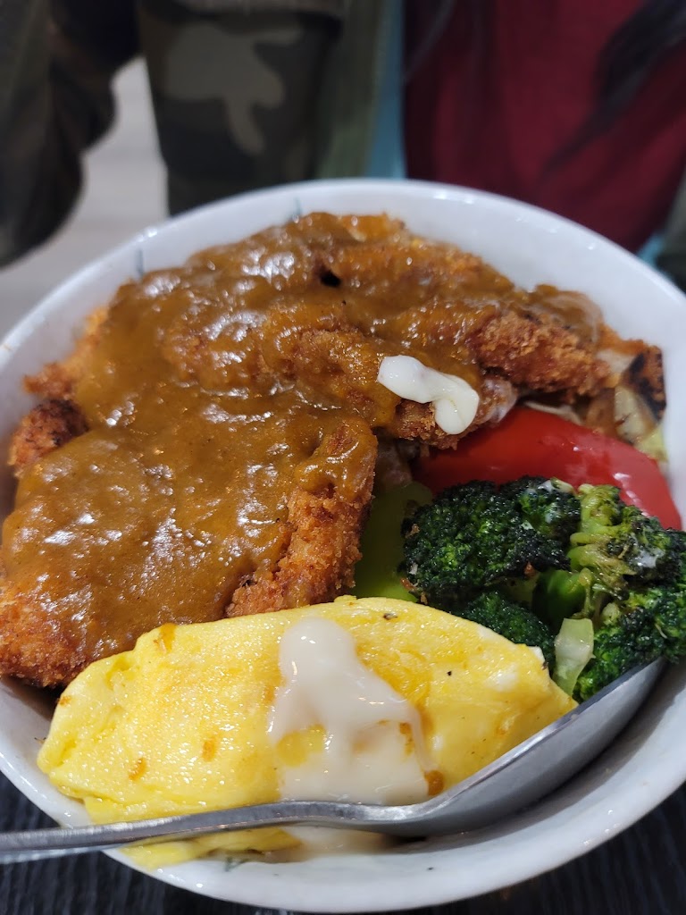 Smells awesome when open the lid! Meatloaf is a little bit dry but the texture is firm. I like it. more garlic is preferred. My friend s order Spicy BBQ chicken is also very good. Very generous sauce go well with rice.if u like curry don t forget to try the chicken katsu