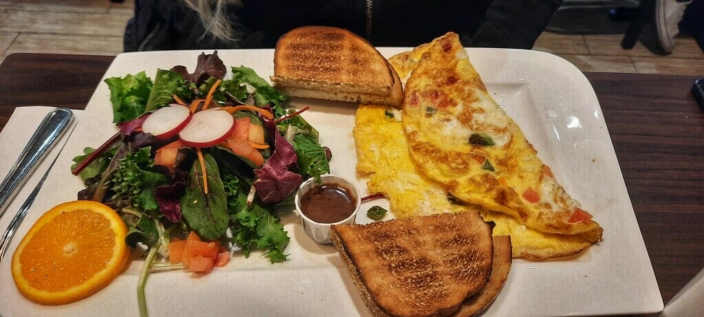 What a great breakfast the Great Canadian was...and the healthy omelette choice was tasty too. Good service and well priced, get there early!
