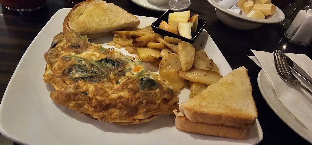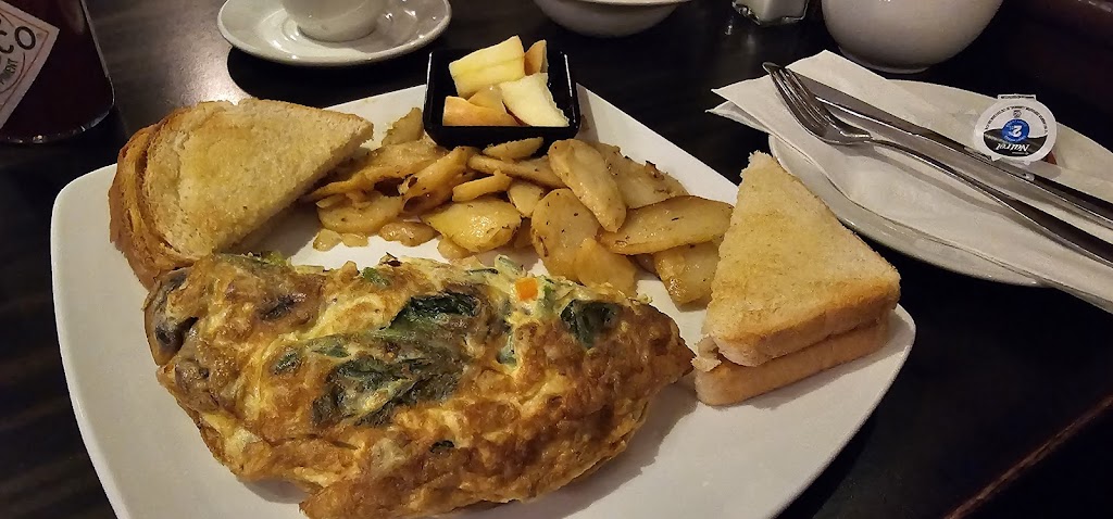 The restaurant was very convenient for its location. I ordered a Greek omelet, which came with potato, toast, and a few slices of apples. Surprisingly, I got charged extra for the veggies they put in the omelet and also for the cheese. They also charged me extra for the coffee, which was told to be included. No one informed me about these extras ahead. The server was nice, but he acted as if these all would be included. In the end, when the breakfast menu costs between 12 to 19 dollars, I end up paying 25 as a total bill. Which I don't appreciate. I feel the server should inform people ahead at the time of taking the order about what will cost them extra. The ambiance was nice but disappointed with these extras. The taste of the food was good.