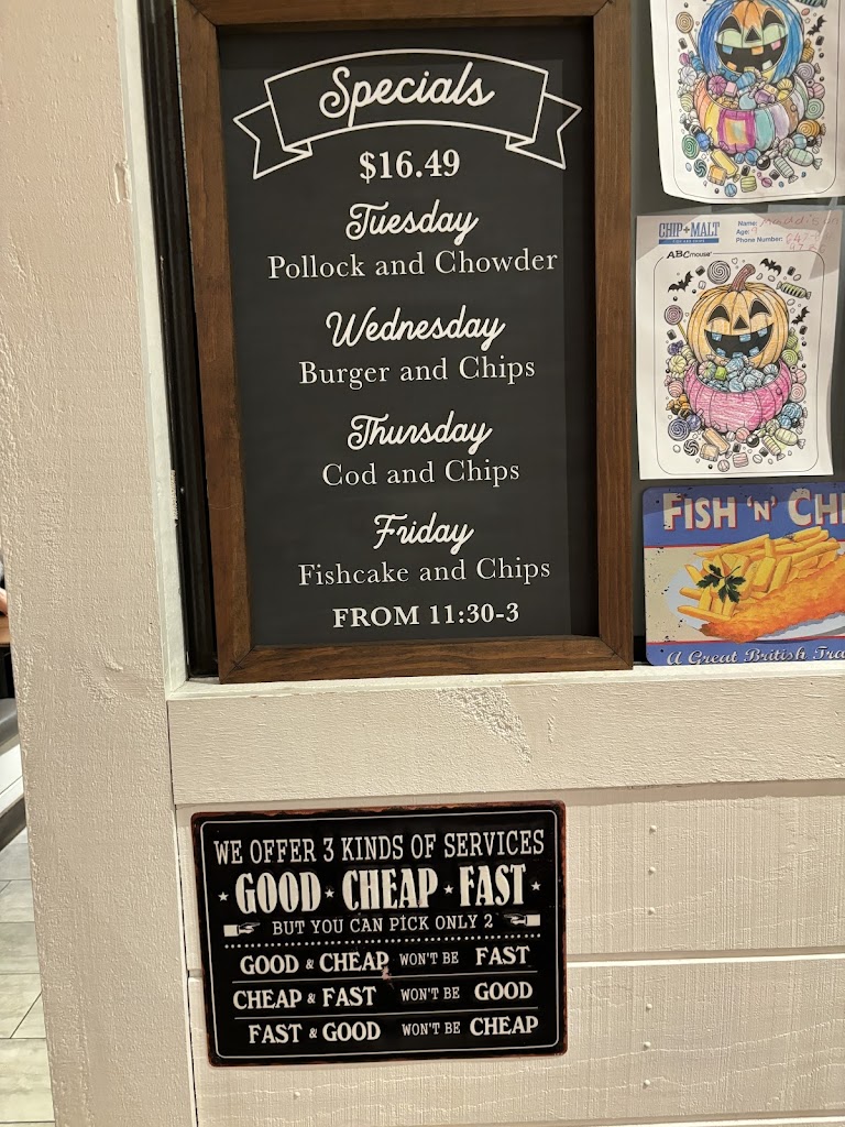 Great service, staff are friendly and welcoming. Normally I order the Haddock & Chips. This time I replaced the Chips with a Seafood Chowder (so good!). It was so substantial that I could only eat half of it (took home the rest).