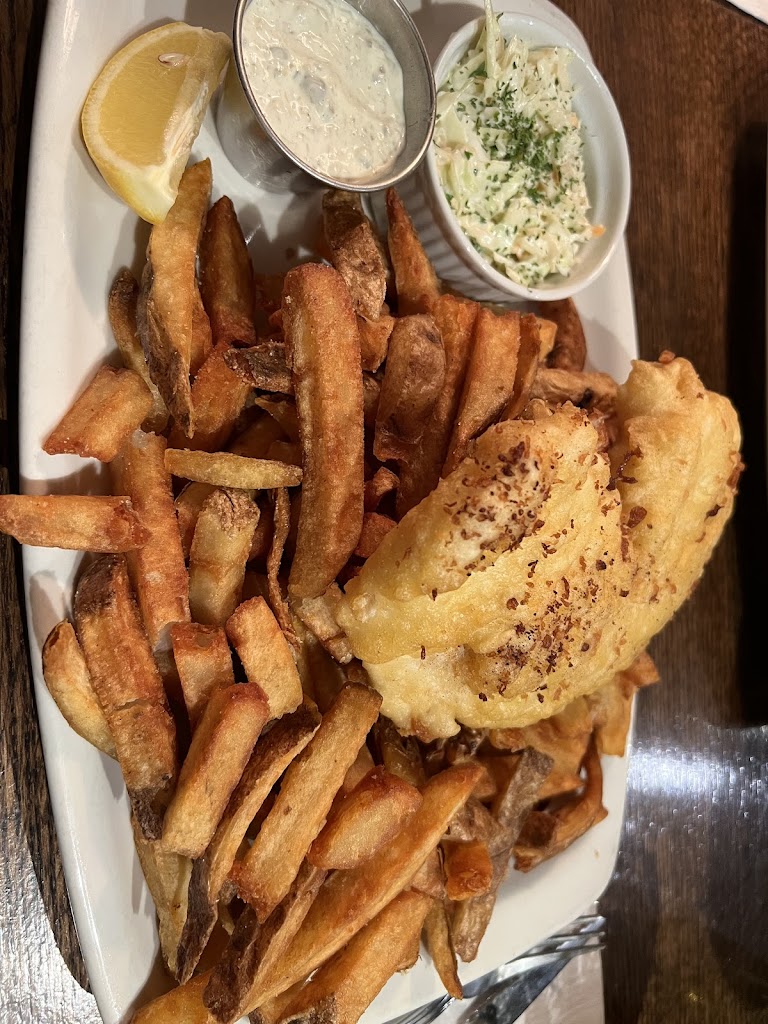 Halibut Fish and Chips was great. However, it was extremely expensive for the size of the fish portion. It seems that they try to compensate for it by giving you enough fries for three people, which no one can or wants to eat.