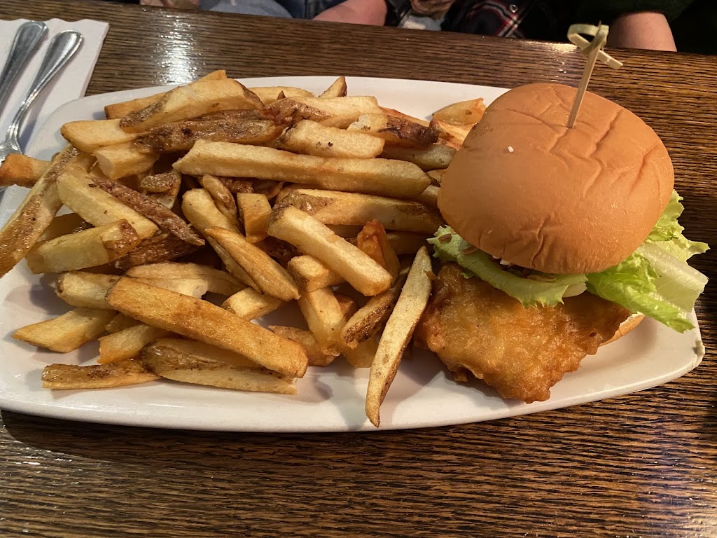 Remarkable burger, mixed ground chuck and brisket. Lightly breaded halibut, very tasty and some of the best fries I have had.