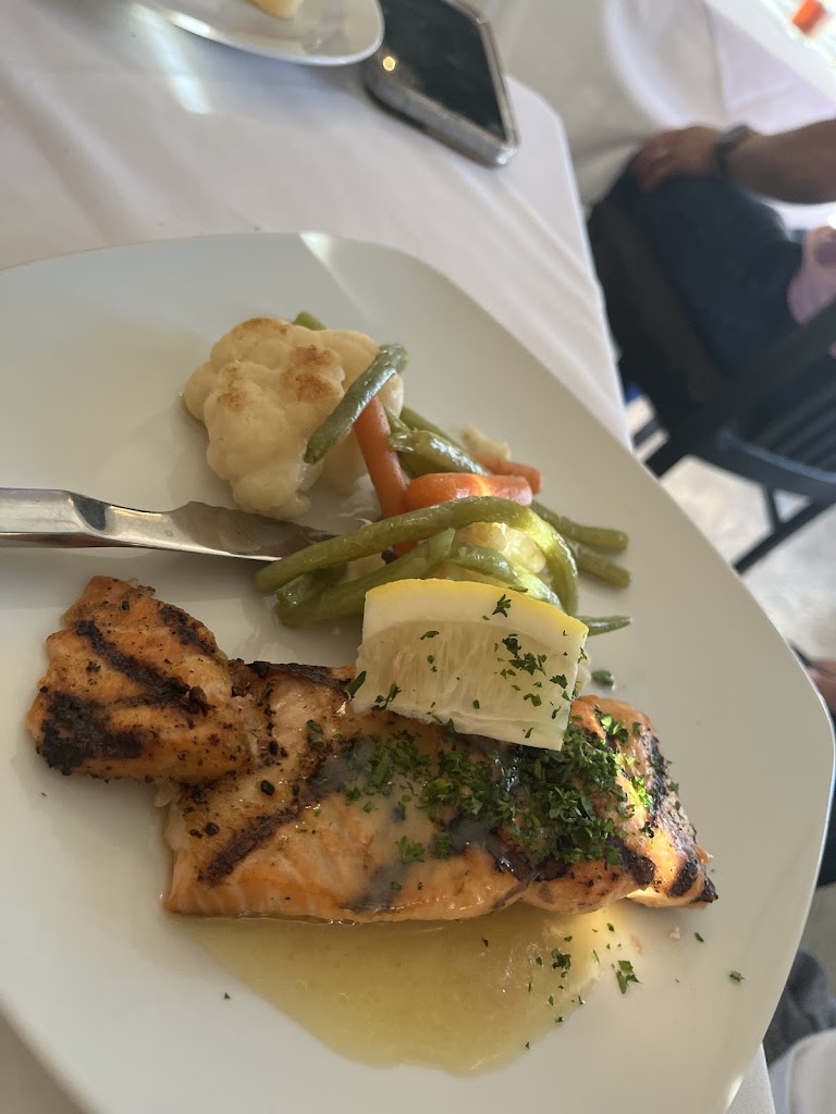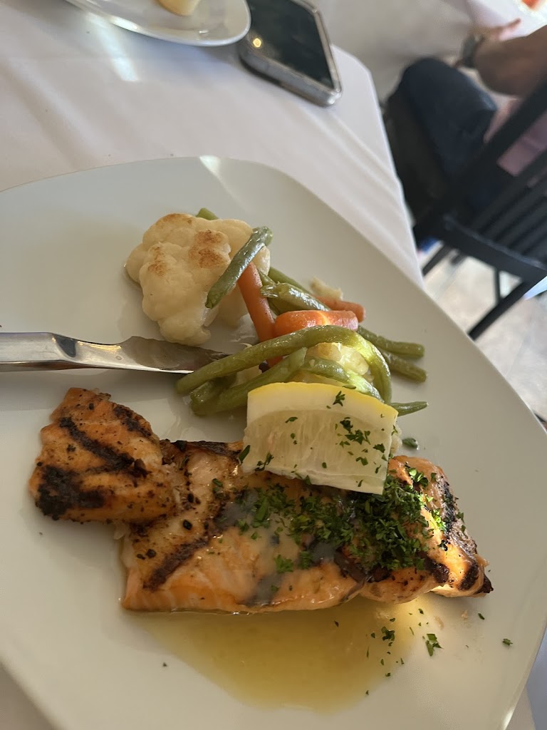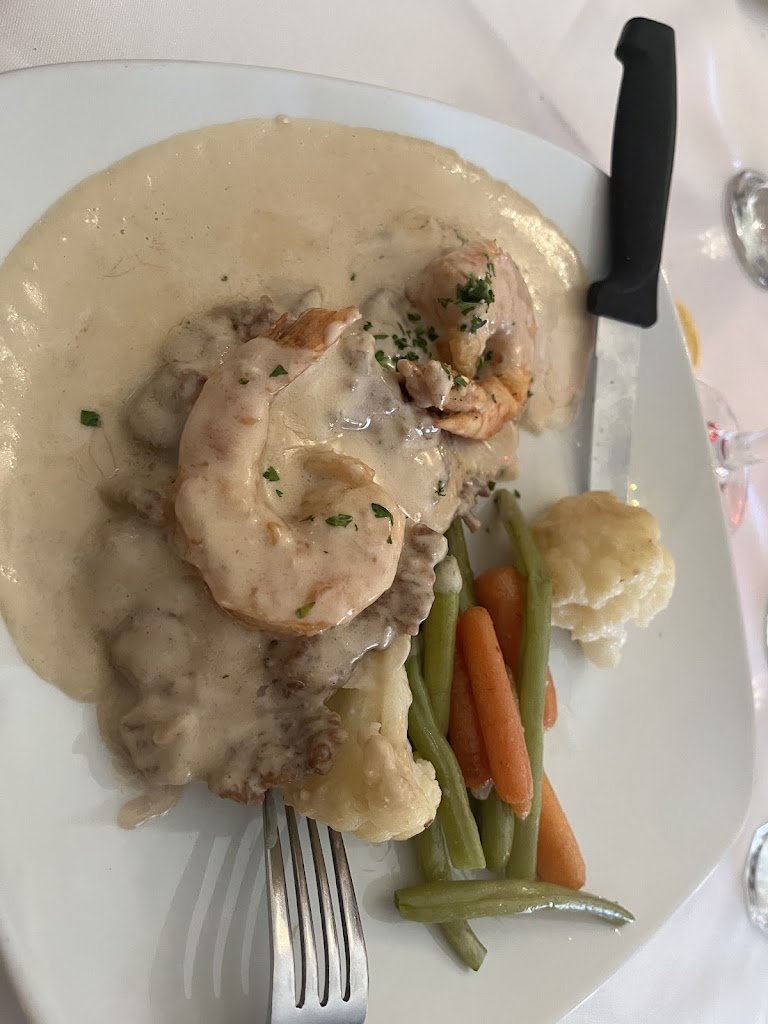 Horrible experience …… it was ladies night out. Four of us had high hope for this place. First going in , server looked at us , walked straight pass us ….. he wasn’t holding a dish. Then I believe it was the owner came and seated us. Server took our drink order , then we ordered Veal, seafood , chicken dishes All comes with frozen veggies !!!! Carrots and long greens…… it’s soggy. Like they aren’t even trying !!!!!’ You would expect dishes cost over $35 ! At least come with some zucchini or roast pepper …… but nope …..just soggy carrots and long greens…… The veal is pathetic ……. It’s broken pieces not even two nice cut ( most restaurant are two decent piece ) please see photo …… The sauce was awful as well ! Poor over cook dry salmon as well …… Never never return ……..