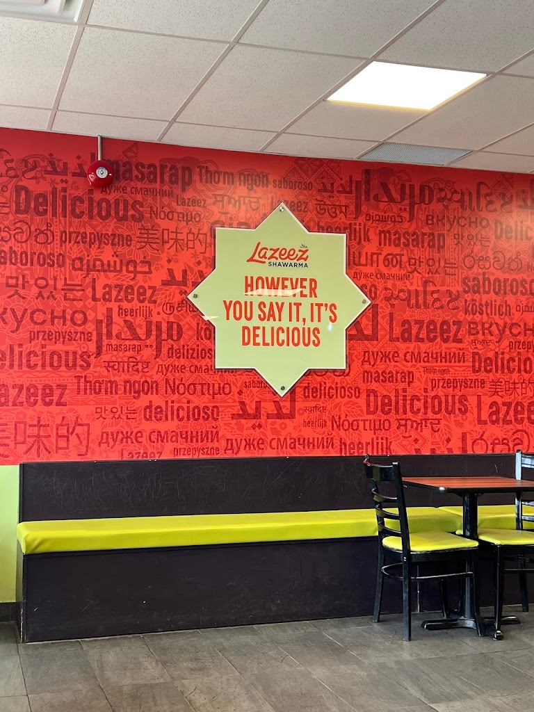I usually come here for their chicken souvlaki platter and Lazeez special platter...my goodness its so delicious (i normally get eight lines of hot sauce which makes it taste even better). And portion wise, id say this place beats every shawarma place in town...super generous. The staff are amazing professionals too. The way they talk to you over the phone, greet you in the restaurant and when they actually serve you the meal, these people are amazing. Ill always come here :) Parking: Usually enough parking on the plaza