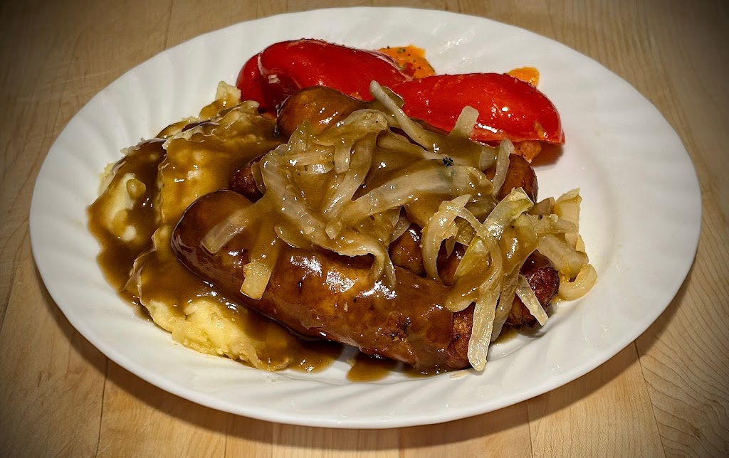 Consistently delicious! Love going here for a special treat. Pictured is the Bangers & Mash. Three delicious bangers, loads of perfectly cooked onion, lots of creamy mashed potatoes with sautéed vegetables and flavourful gravy to bring it all together. Yum! Plus the staff are always happy to see you 😁
