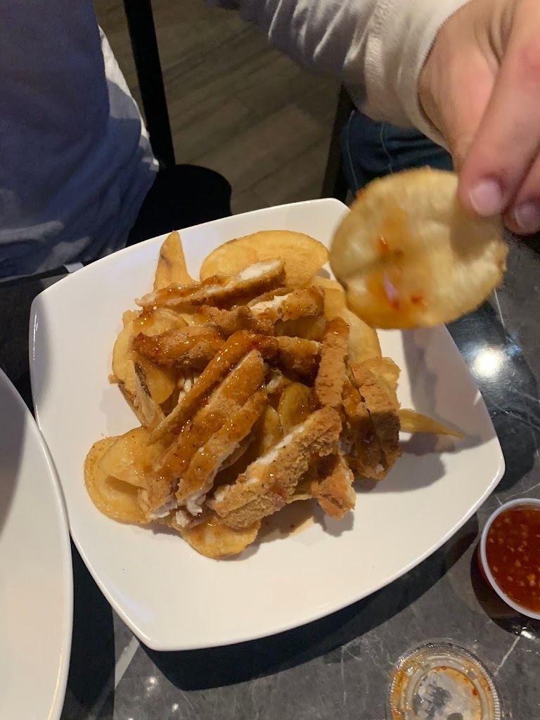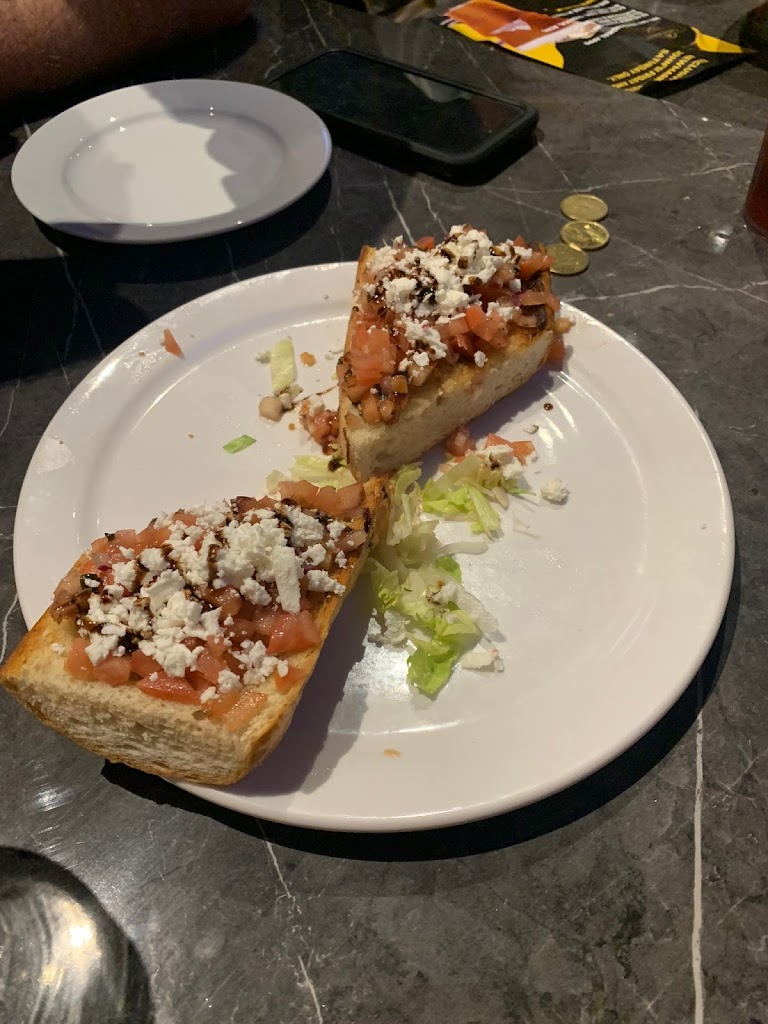 Food felt like it was made an hour in advance, everything we ordered was soggy and wet. (Bruschetta, poutine, fish tacos, spinach dip) we order from Uber eats at least once a week and this was the worst experience I ve had ever. We literally threw out $60 worth of food. Portions were massive but it didn t matter since none of the food was edible. I have never left a bad review, but I felt like this time it was necessary because we need to make another dinner. All things considered, this was my experience with Uber eats, and dining in may be different.