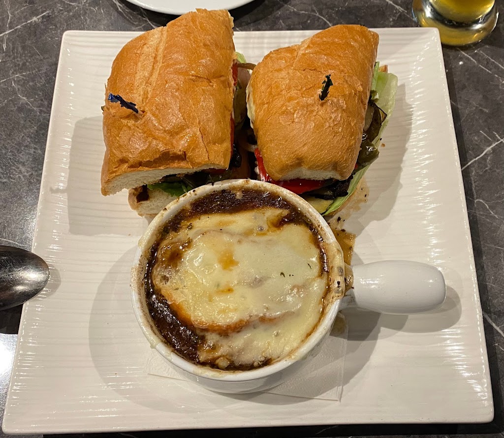 The menu is huge. It s hard to choose something to eat. I had their French onion soup and fries. Both are great here. The best fries ever! Their like Costco fries. Unbeatable. Great servers and atmosphere for a date or with a group of friends.