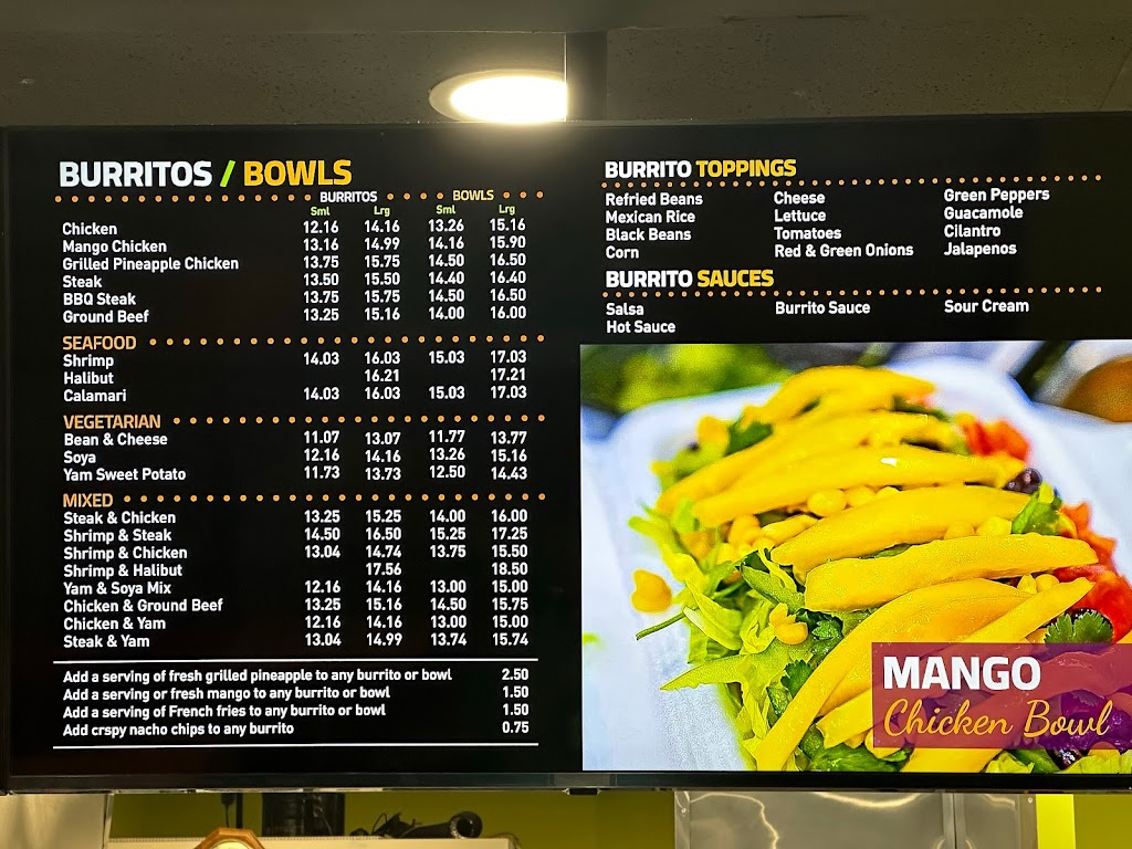 This was so good that I forgot to take photos. I had the chicken and shrimp burrito bowls. Usually, burrito joints would deep-fry the shrimp, but it was pan seared or grilled. Super flavourful and a good portion too. The chicken was white meat so I worried that it d be dry but it was also really moist and flavourful. Veggies were crunchy and light. The salsa is better than most places, sweet and crunchy! THEY ALSO DONT CHARGE FOR GUAC OR CHEESE. YES, GUAC IS INCLUDED. Guaccccc I will try the steak and mango chicken next and not forget to take photos!! March 17 2021: Had the Mango Chicken, they use real fresh mangos! It was so good. Healthy portions, mind you, I had a small and it was so satisfying. I asked for less sauce which made it just perfect for me. The burrito is so stuffed!!