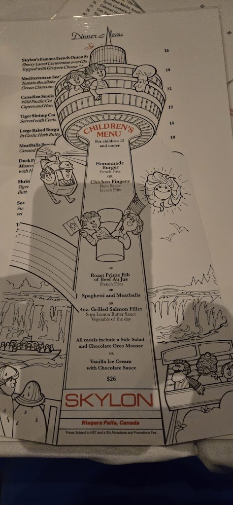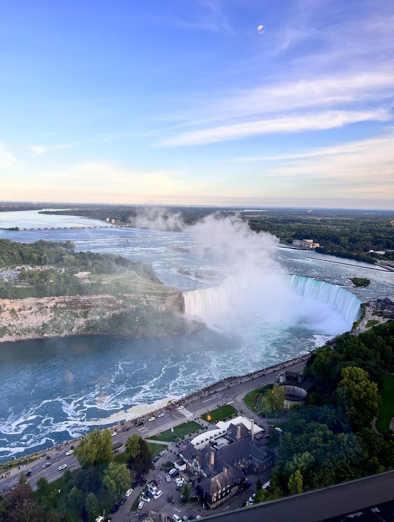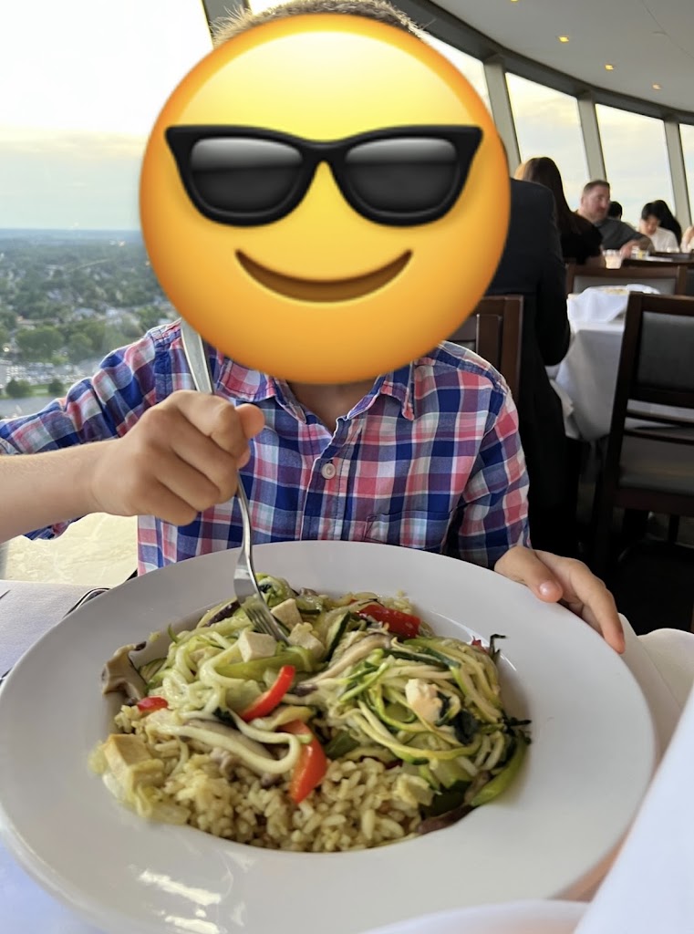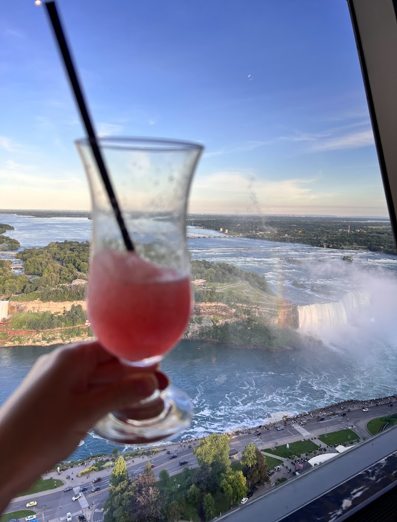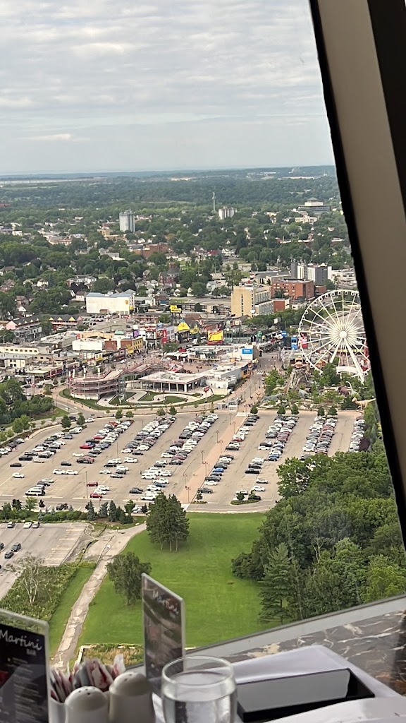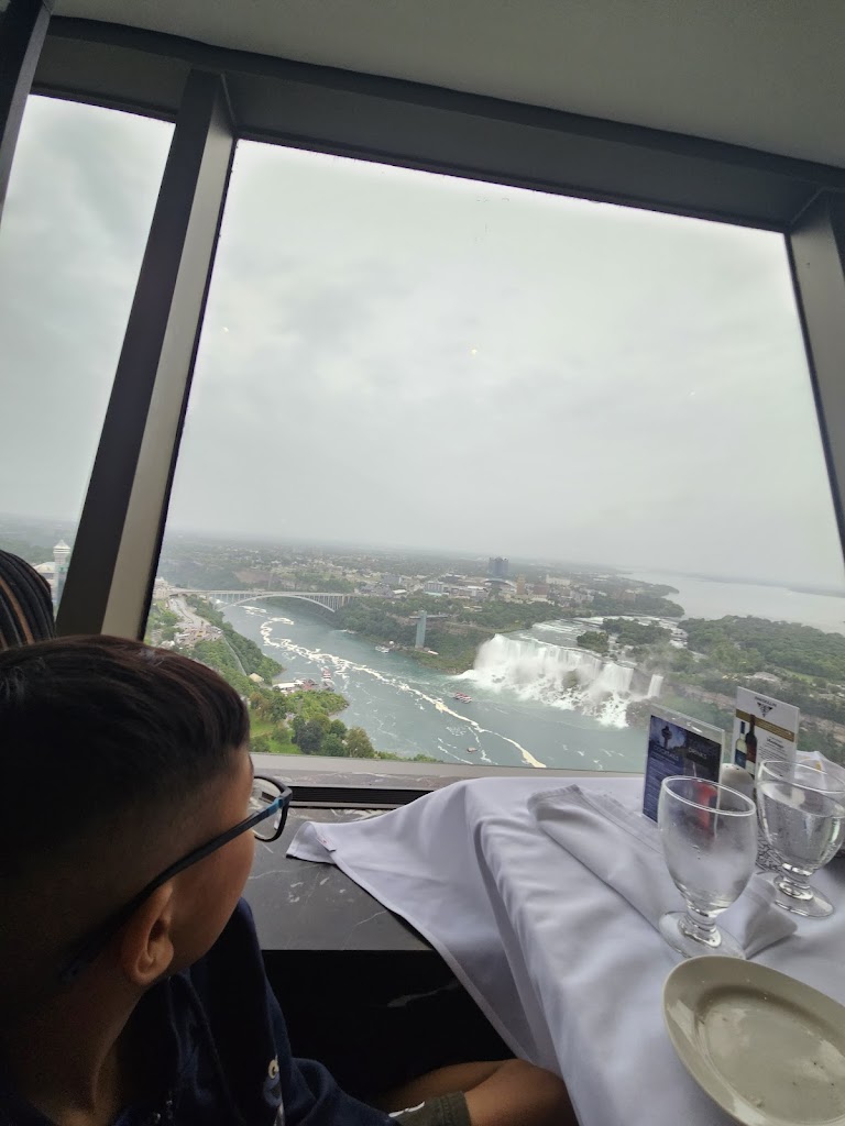 This was a dinner experience we won’t forget. We came here with a party of 11 people (6 adults and 5 kids - ages ranging from 15 to 2). For that size of a party, you absolutely 1000% need to make a reservation in advance. When we went (5:30pm), they had the early starter dinner menu but also offered the standard dinner menu. They were turning people away because it was so booked - on a Thursday! First - the view is absolutely stunning. I believe while we dined (for two hours), the dining room revolved about twice. We had amazing views of the Niagara Falls and surrounding area. Gorgeous. Second - the food was delicious. It wasn’t the best I’ve ever had - and it was quite pricey - but it was definitely delicious. We ordered two bottles of wine for the adults. The kids menu is decent and a bit of a variety for them. The dessert that came with our three course entrees (part of the early menu appeal) was decent, as well. The kids enjoyed it! Third - the restaurant definitely feels fancy - but the dress code is relaxed. They know people have been touring the Falls all day and expect people to be dressed for that. Please note that they are trying to accommodate many people who want to dine there and share in the experience. Be mindful that you really should not stay over the 1.5-2 hour mark and that the waiters do try to move the experience along. As a party of 11, we definitely needed the full 2 hours to eat and whatnot. Enjoy the experience. It’s going to be pricey - but also consider that it includes your tickets to the top of the tower - which you’d have to pay for separately if you weren’t eating. And then after your meal, you can spend as much time in the viewing tower as you’d like. You only live once. If you’re visiting Niagara Falls, enjoy a meal here. It’s beautiful.