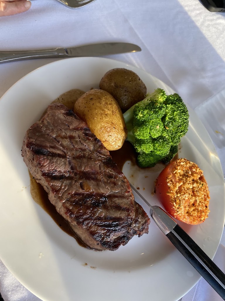 New York strip was on point, the Chilean Sea Bass was too perfection. The grilled vegetables were not good. The French onion soup & ceaser sald were delicious. The service was immaculate and the atmosphere/view was tremendous and worth it. Best place for a couple to enjoy the Falls view.