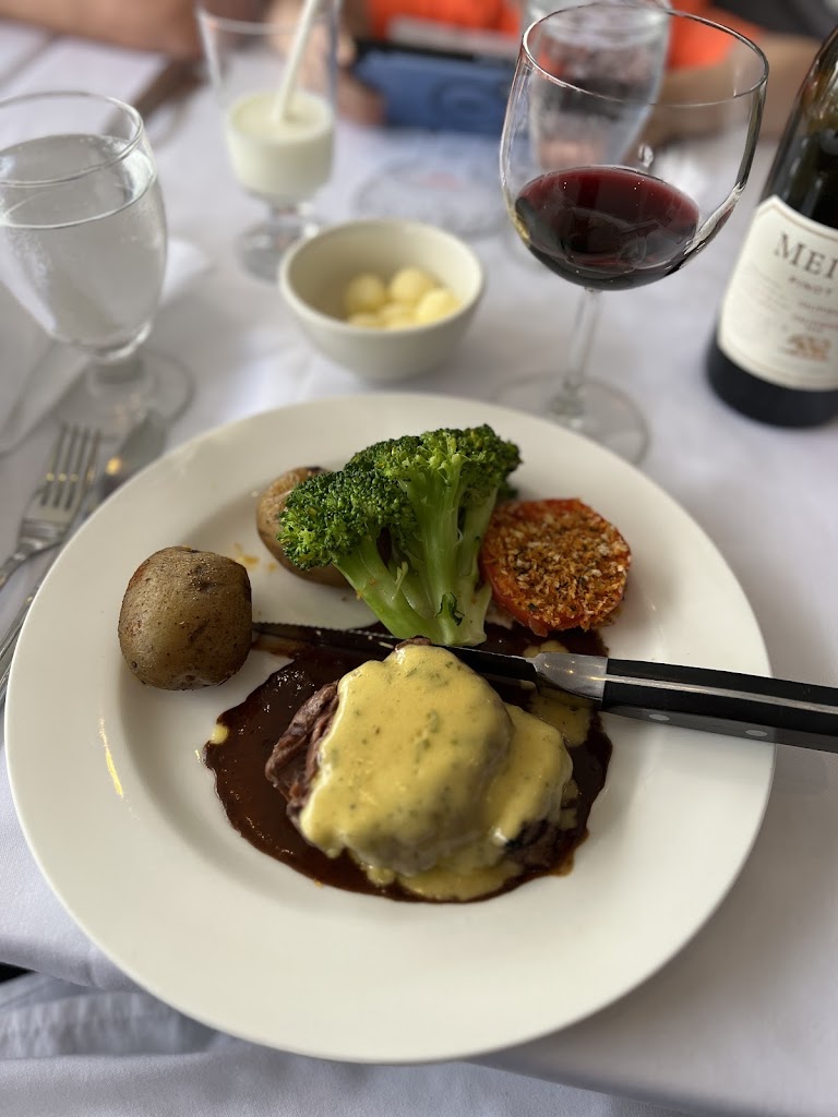 This is not a cheap meal, but you should splurge every once in a while for something nice, and this an exceptional dining experience. The staff make you feel special with their service. The view is unmatched. We had scallops st Jacques, and it was so delicious. For main course, my wife had the soy sea bass. It was a huge piece of fish cooked perfectly. Melt in your mouth good. I had the rack of lamb, cooked medium rare and we shared a side of sauteed mushrooms. The lamb was wonderful and the mushrooms get 5 stars. There were 3 or 4 varieties sauteed with garlic. I could eat that every day of my life. For dessert we had chocolate velvet cheesecake. My eyes rolled back in my head with the first bite. All in all it was a wonderful experience. Don't pass it up, if you are a fan of fine dining, it is money well spent.