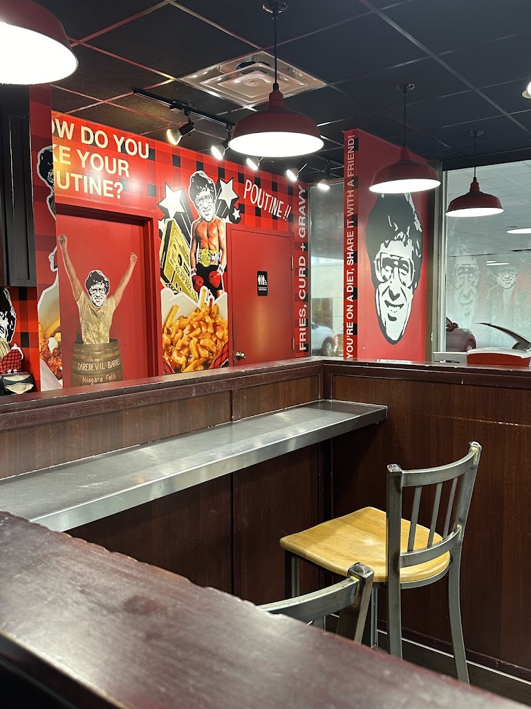 Mouth watering food that could camp in your tongue for hours. The service was fast. I got a hot bowl of poutine quickly. I vividly remember my first time trying poutine in canada at this place. I had a mushroom sauteed beef poutine. Which was absolutely delicious. Today I had bacon cheeseburger poutine. The bacon was crispy, the cheeseburger layer was hot and the fries were absolutely fresh. Kudos for continuing to maintain good standards.