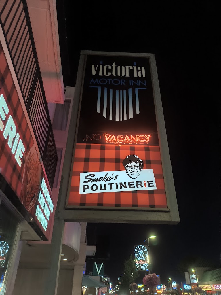 Sunday evening the road is packed all the food joints have line ups. This place is dead. My son wanted a poutine. Got him a medium for $14. What??? Wow that must be an awesome poutine? NOT. Go 4 minutes down the road towards the skywheel. Burger Factory. I would not recommend this poutine place.