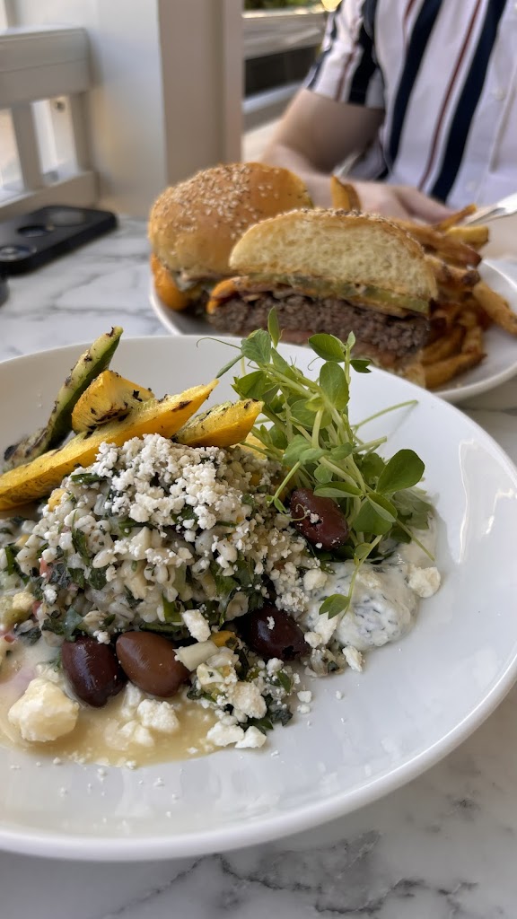 We were excited to try this place. It s a beautiful establishment and have 3 wonderful patios. Staff are friendly. Food unfortunately was just ok and not as described. I ordered chicken with tabbouleh and the tabbouleh was not actually tabbouleh but rather a barley salad mostly of grain rather than vegetables. My partner ordered a burger and fries. Fries were greasy, and flat rather than fresh, and crunchy. Unfortunately left feeling a bit let down by the expedience