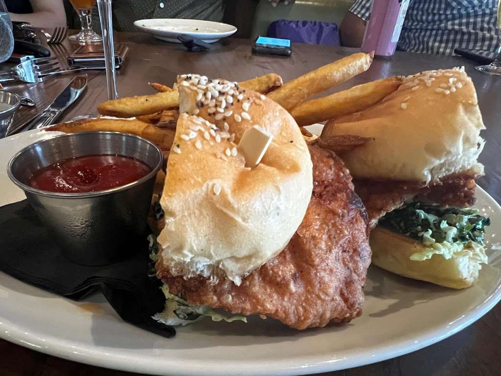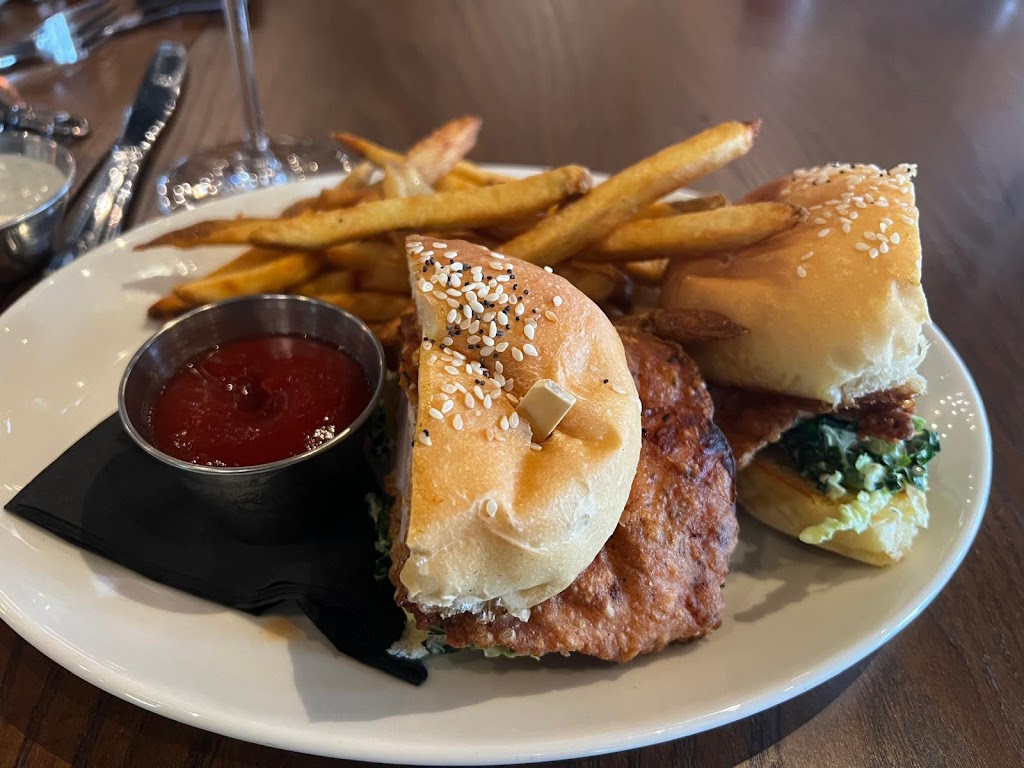 Burger was great, chicken tenders were tasty. Our only disappointment was the Cobb salad as it was more a side salad portion than entree sized for the price ($26). However they did compensate with a complementary dessert!
