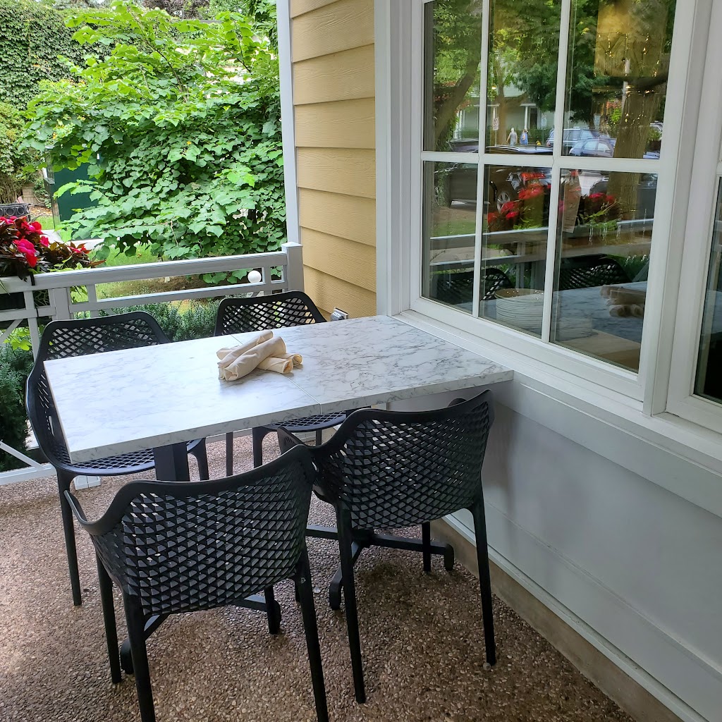 We had wine and a snack our first day and lunch on our third on the front porch. The food was excellent and they have an extensive wine list. The service was excellent and the place was very clean with a lot of room inside as well.