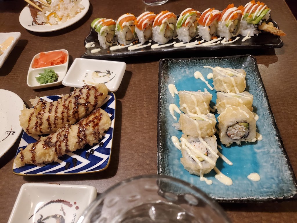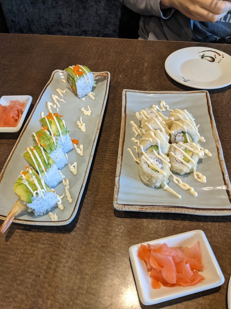 Great place to come when depressed after driving hours through sask. Staff were amazing. Art work was interesting. Sushi tasted so good. Might be back sooner than you think. Deep fried banana is weird btw.