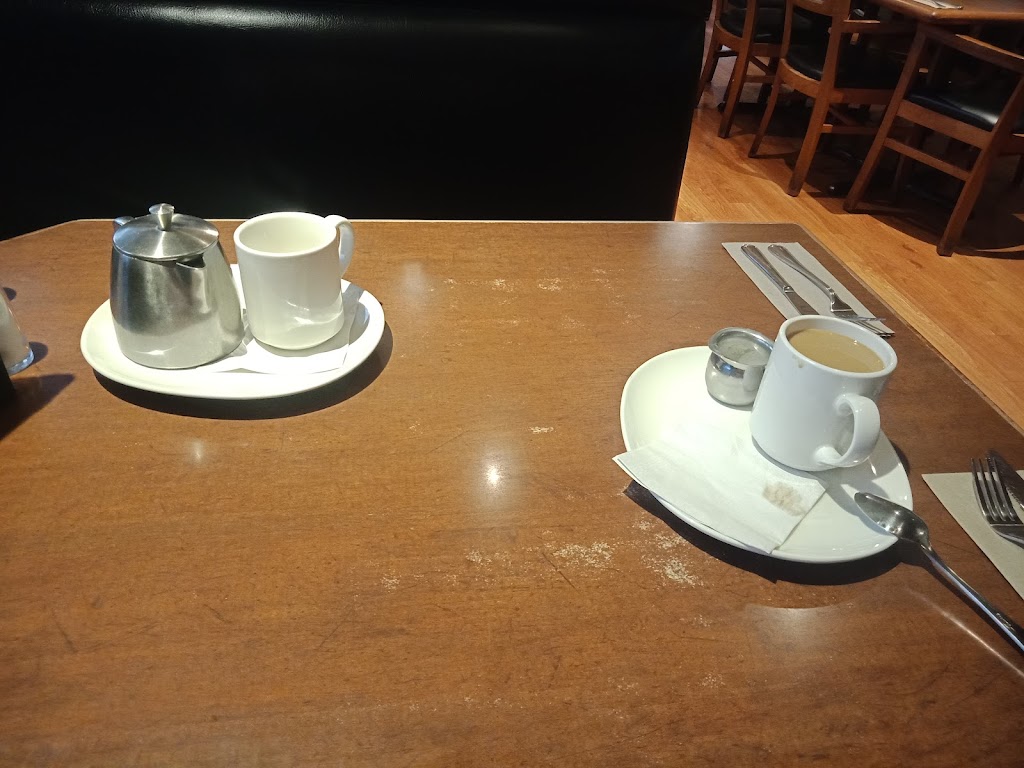 We came here for breakfast. I wasnt ready to order a drink but my friend asked for water and the server only brought one glass of water and when we got our food there was this big hair stuck to my friend s food and we had to change it. I had to eat alone slowly until his food comes again. The experience was ruined. Wont come here again