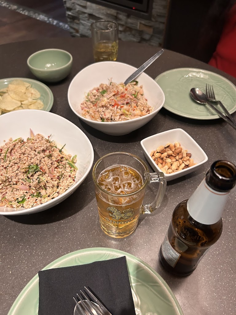 I miss Singha which is Thai beer so much. Just 5bucks can bring me home😍 I got Larb and Yum woon sen with extra spicy and lime, it’s so Thai authentic foods! Jeff, the server has a wonderful service.