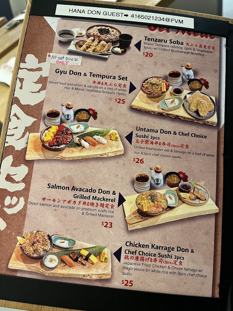 Finally got to try Hana Don myself after hearing mixed reviews from everyone. I got the Deluxe Bara Don and my boyfriend got the Gyudon. The Deluxe Bara Don was fresh and delicious I was stuffed after finishing it! The only thing I wish was that there could be a little bit more uni. I didn t try the Gyudon but my boyfriend enjoyed it. There was a good amount of beef and rice, the dish was piping hot when it came out and he said it was very filling. The servers there were very nice and attentive. They always came and refilled our waters and took our empty plates away. Will definitely come back to try their other bowls! Parking: Fairview mall parking