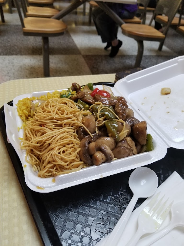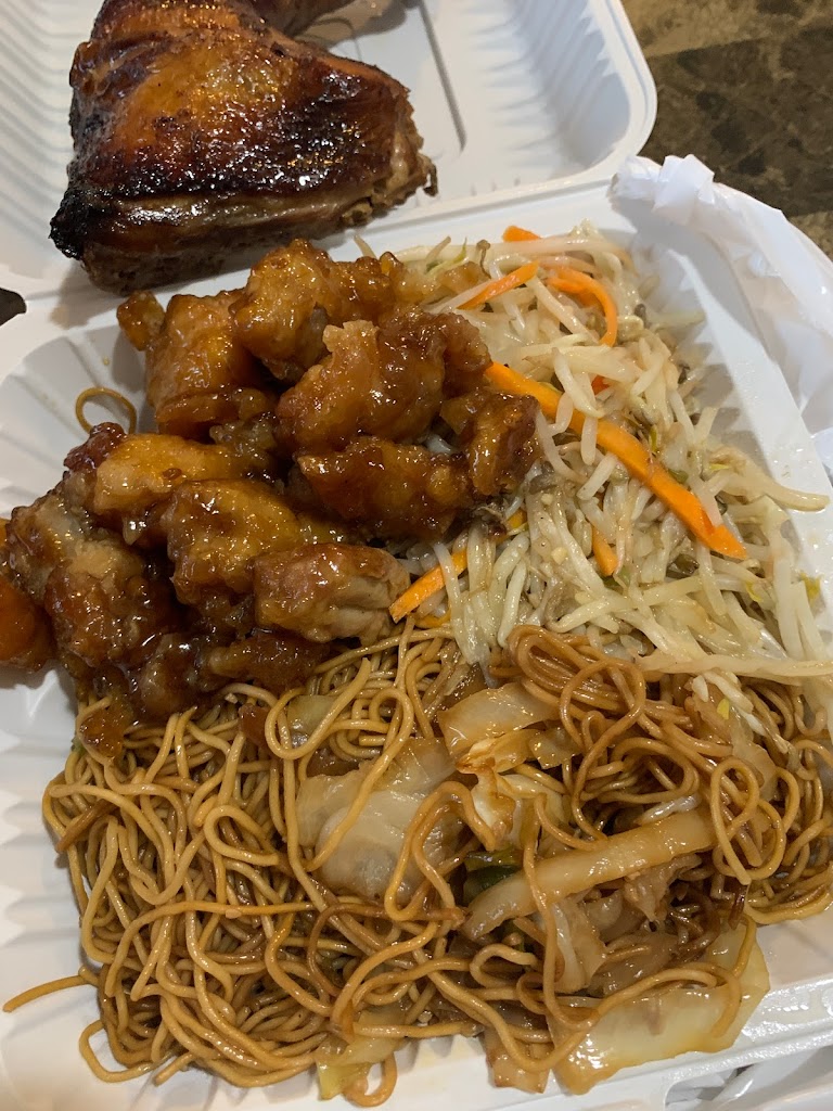 Terrible food and handful of rice for over 10 dollars. Wasn't enough rice to fill me. I made bad choice of getting batter fried chicken (was that chicken) cause it didn't look like it. So much batter and barely chicken. I cook chicken lots but mine tastes like chicken even if it's not the breast pieces. Possibly recooked several times,it tasted like glue with so much flour batter around. And how much profit are they making on lousy bag of rice? Servings are for kids, not adults. Container was so light after paying over $10. Don't buy their broccoli cause customer complained there was tiny white worm on her plate. The staff said it was the broccoli.