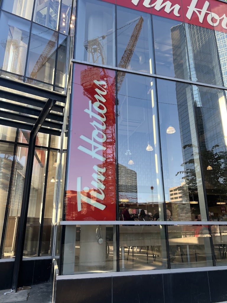 In Toronto, I see more Tim Hortons than Starbucks, so I go often. There are sofas and chairs to sit comfortably, and the ceiling is high, so its nice that it doesnt feel stuffy even when there are a lot of people. Tim Hortons is always full of people.
