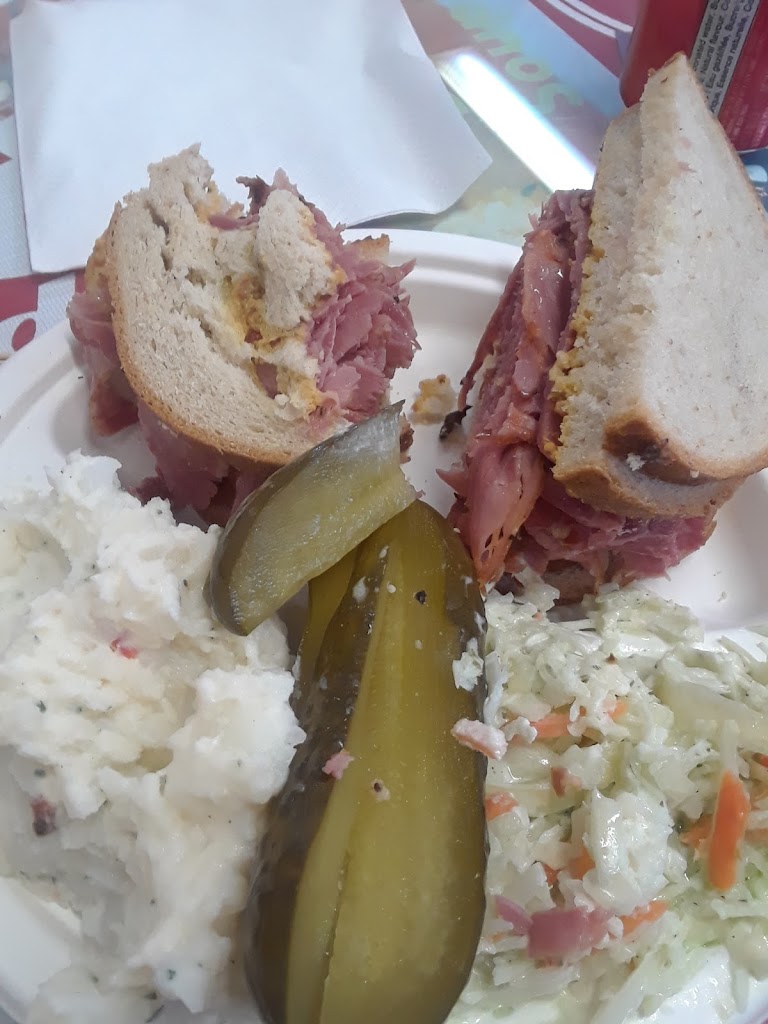 I found this place on Uber Eats and the corn beef sandwich was delicious. I am very glad I found this place. The portion of food was perfect. The dill pickles are very good as well. Will definitely order from here again.