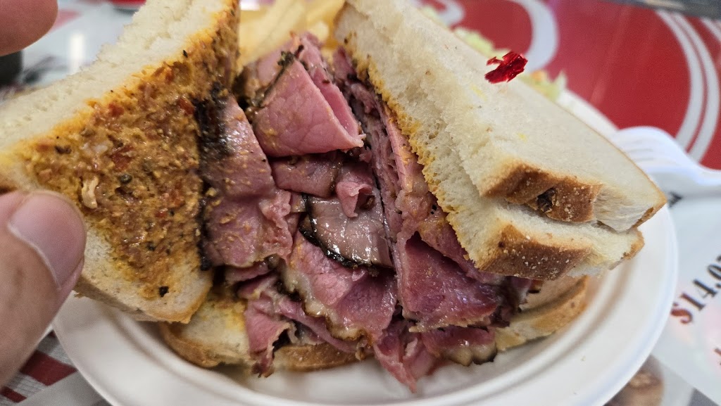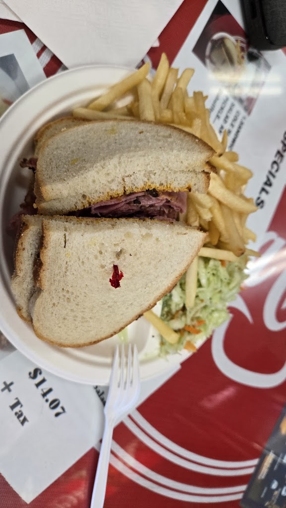 Wow. I dont think ive had a better pastrami sandwich! Amazing flavor and texture. Not too greasy, and just enough meat. The only downside is that the price is kind of steep, at $13 a sandwich (and then $5.50 for the fries), but I think in terms of taste, you get what you pay for and then some more. The bread was SUPER SOFT and pillowy, and didnt fall apart while eating the sandwich. The fries were what mcdonalds fries wish to be!!! Super fluffy on the inside, and crispy on the outside, also not overwhelming with grease! The fries are a MUST GET when you come here!! Now for service, the man and lady working there (The owners, i guess) had great service and very friendly. The lady took great care in making and bringing the sandwich to where I was sitting and super nice too! The atmostphere was I think, a back in time portal from the 1990 s-2000 s! Super cozy and comfortable space to enjoy my sandwich. I really wish I took pictures to show you guys, but when I was eating the sandwich possessed me with how good it was lol.. Overall 5 stars across the board for me and gets a rating of 9.3/10. Only docked .7 because $21 for a sandwich with fries is a little steep with no drink. Other than that, I honestly couldnt of asked for more. Superb job guys!!