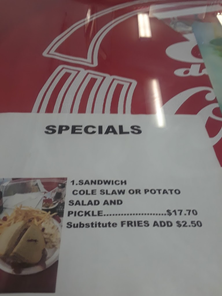 Dont trust the reviews on this place. Menu is very deceiving. There is a special that says any sandwich + coleslaw and fries for $20. I tried to order the Reuben sandwich but was told this wasnt part of the special...... If its not part of the special it should say so on the menu. So was told by the extremely rude waitress, that its not included. But she would find a way to charge it differently to accommodate. Upon checking out, there was no charging differently . I was charged full price for the sandwich / fries and coleslaw separately. Had I known that I would be charged separately for each item. I wouldve just got a different sandwich. The sandwich was good. But to be charged $26 for this said special was a bit ridiculous. Considering the original special was $20. Can guarantee I wont be returning