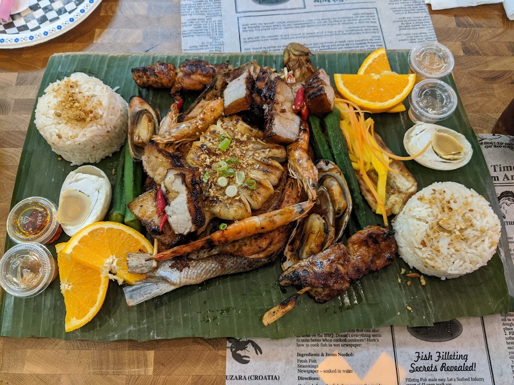 Awsome yummy food at a decent price. They serve single to family size boodle fight platters for take out or patio. Made fresh and you cam also order ahead of time.