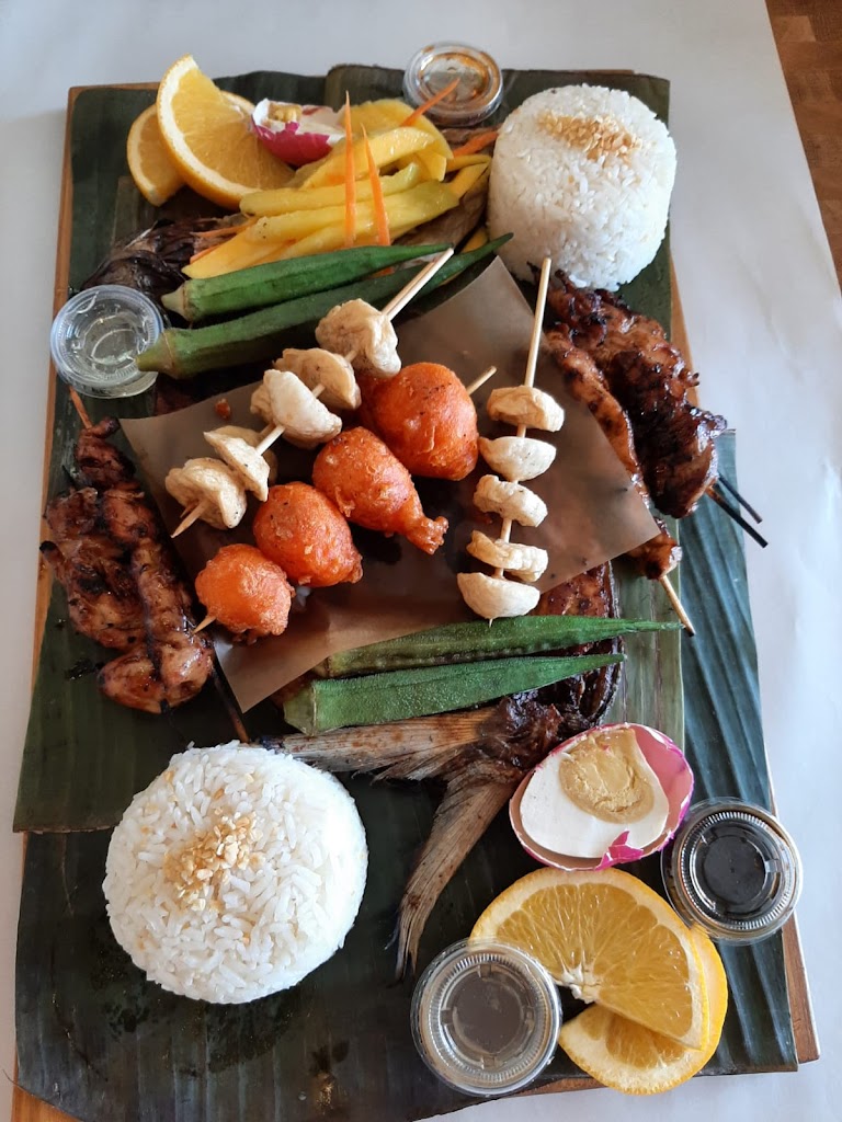 Had the boodle for 2. Pros: Pork was super tasty. Meat on the stick was delicious. Fish was big, meaty and flavoured well. Deboned too Salad was refreshing They were really polite and accommodating Homey atmosphere. Cons: Egg plant was cold Lady fingers could be grilled longer. No charring Garlic rice can be more fragrant Shrimp was over cooked. Skin was sticking to the meat They had limited table seating. Not good for large groups of people.