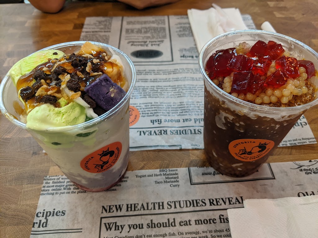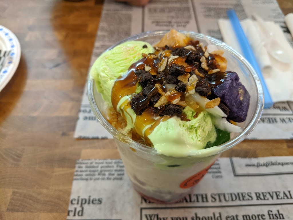 Very good halo halo, especially the ube ice cream which is supposedly homemade. You can taste the difference although my mom found it a bit too rich. The staff are very friendly and nice. This is a comment that applies to most places that sell halo halo but they typically sell it in a cup thats too small such that you cant properly mix the dessert without making a huge mess. If you are able to, bring your own cup and transfer the contest if you want it mixed more, otherwise bring lots of paper towels. I love the homey market vibe of the place which also sells groceries. Parking: Limited strip plaza parking.