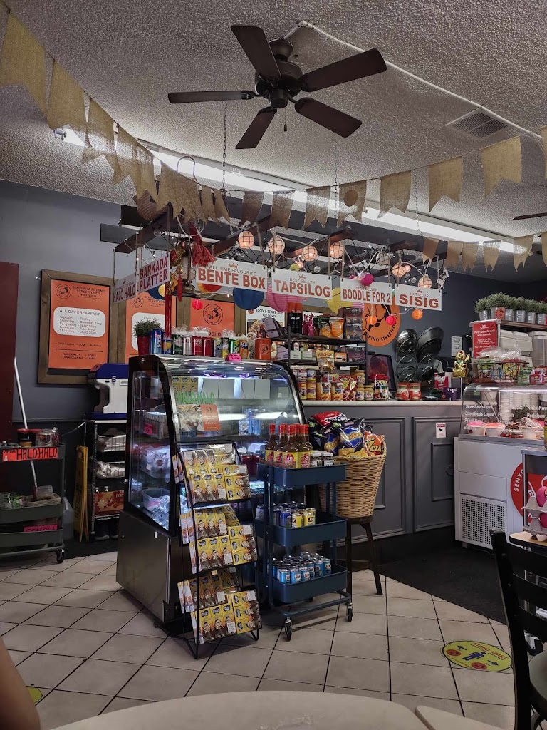 Amazing food and customer service! Food portions were good and the atmosphere reminded us of being in a street market in the Philippines. Also a good selection of grocery items. Highly recommended!