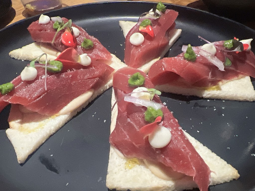 Definitely on the pricey side but loved the creative touches they added to the items on the menu and the quality of the food. Restaurant ambience was lovely and felt classy. We had the Seared Salmon roll, Cali Donburi, East and West Coast Oysters, Crispy Pork Belly, and their specialty sakes. Food took a bit to arrive but it was absolutely worth the wait. Servers were also very friendly. Sometimes took a little to get their attention as it was busy but generally very attentive. Consider coming with a group of friends as they have many shareable options. Overall a great experience, will be coming again in the future. Parking: Paid parking was available behind the restaurant when we arrived, be prepared for a bit of a walk especially on weekends.