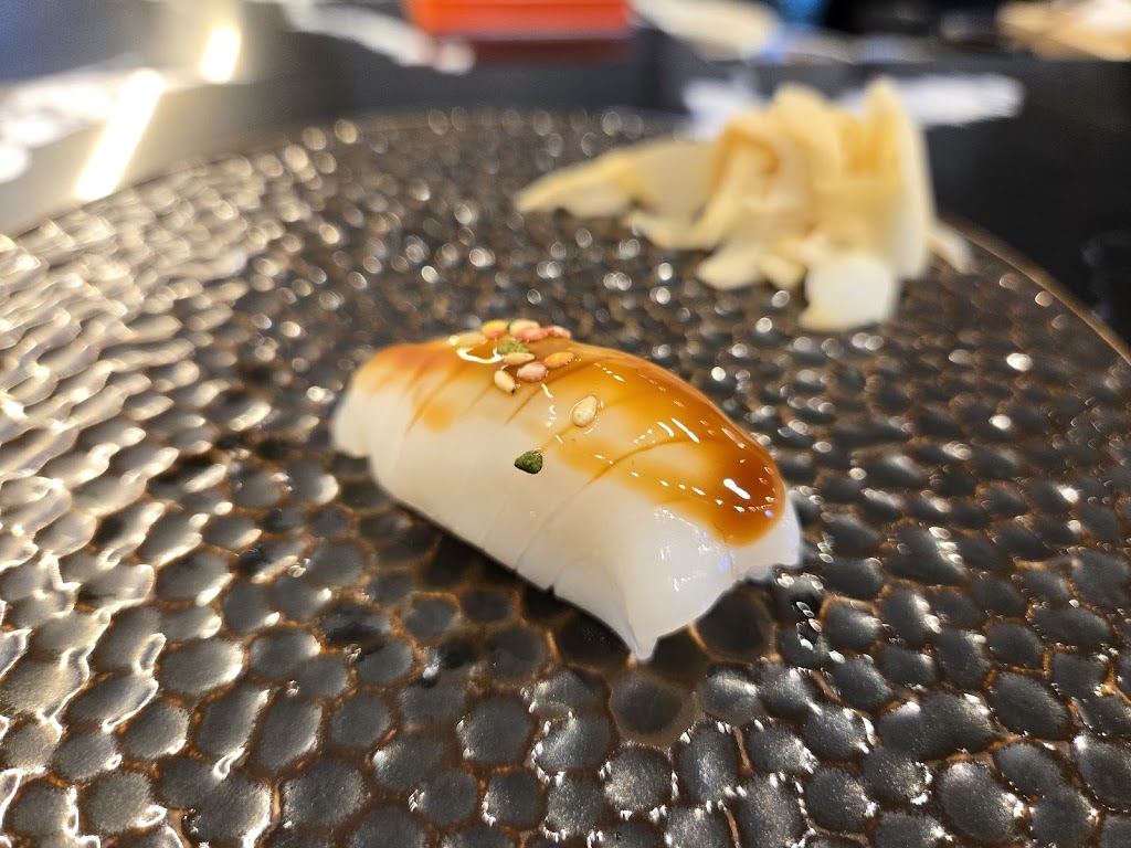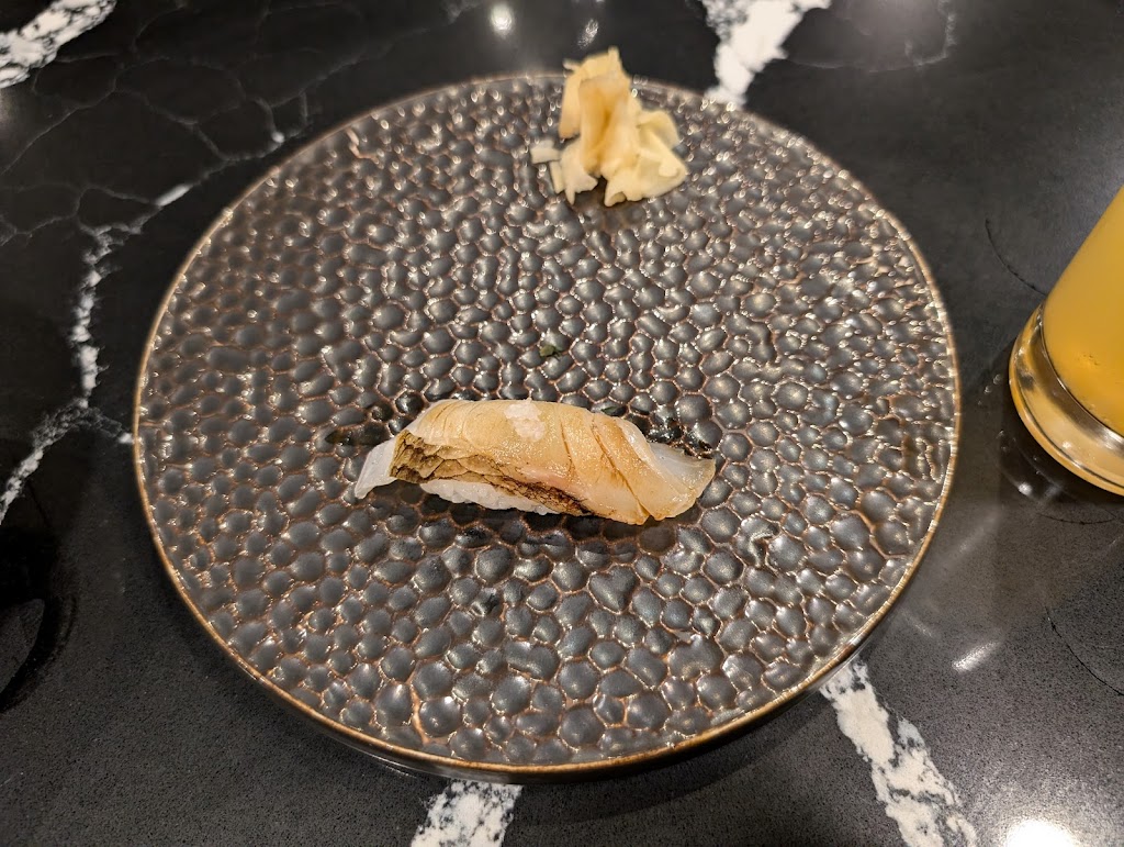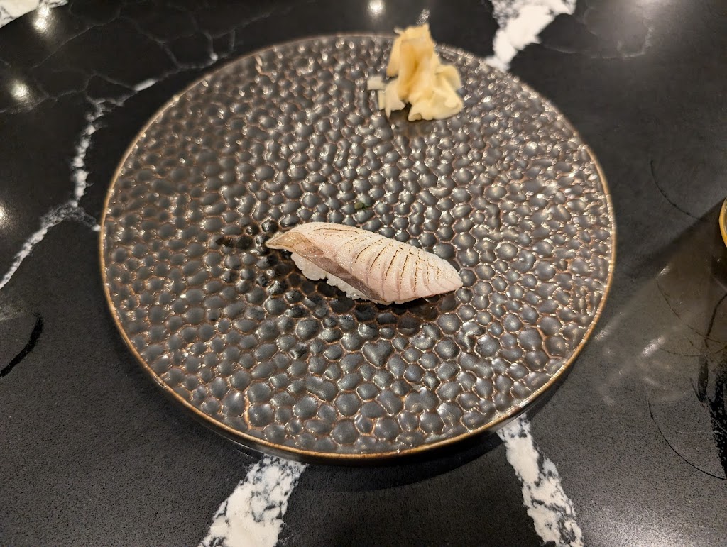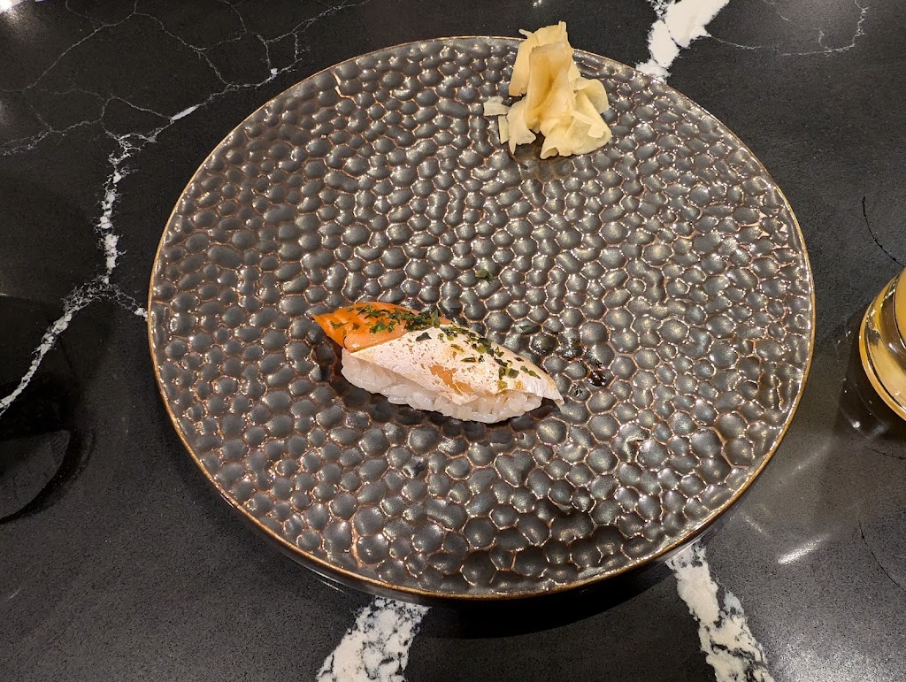 Okay, not amazing. Lots of competition at this price point. TLDR: just go to Zen. Nigiri is slightly better than an upscale takeout. Semi-premium offerings with little focus on seasonality, technique, or flavour, just a touch of (superfluous) decoration. Slightly worse than Yasu, which is the benchmark entry-level nigiri. Limited sake offerings. Service was attentive, although server was awkwardly traversing the sushi bar to pour. Atmosphere was wanting. Impossible to get in and out of chairs at the sushi bar. Odd choice of pop music, somewhat add odds with the serenity of a sushi bar. There was a genuine effort by the staff to do a good job, unfortunately, its just not up to snuff.