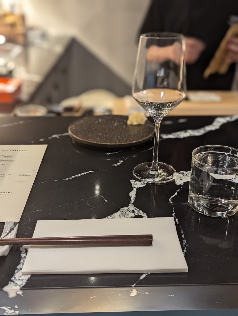 Almost a perfect dining experience. Parking is in short supply. Adding a location and parking instructions to the website would be helpful. Small and quaint with seating for approximately 10 to 15(est) guests. Young waiting staff, enthusiastic but does not exude confidence like a seasoned restaurateurs. However, this does not detract from experience as it adds a bit of uniqueness. Freshness to the usual omakase. Enjoyed the standard omakase menu at $58/person. The fish is fresh and flavours are delicious. Preparation of the sushi can be improved as we experienced some pieces with loose rice (insufficiently compressed) which potentially leads to a messier experience. Omakase as an experience/event was good. Have had better before as well. I believe an experience like this should have more presentation by the chef. More information of where the fish was caught, why it was selected, and preparation process would be fun. Drink selection is excellent for pairing to food served.