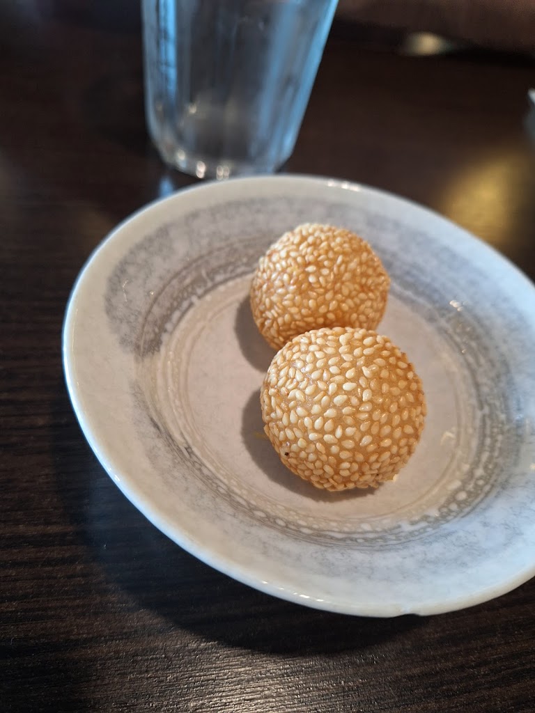 The service: I came here by myself and while they were initially confused, they sat me at a table for 4 people and were very polite to me. The service was well despite the fact that I could tell that they were confused, maybe slightly annoyed that i took up a big table but that is understandable, honestly. I only asked for water to drink and I ordered the salmon lovers special + the avocado and yam classic roll. Eventually they realized that I preferred not being checked up on as often and they gave me my space but still kept an eye on me. My water was refilled multiple times, they consistently asked if everything was okay with my food and if I was enjoying it. The food: As for the food itself; I was given miso soup and a salad as appetizers before my food arrived and the miso soup was very good; it came with mushrooms, wakame, and bits of scallion. The salmon lovers special was presented very nicely with a small lemon on fire in the center of the plate and the pieces of the sushi themselves were fairly big and they were generous with the pieces of their salmon sashimi, everything was delicious, I was very pleased with the way that my dinning experience went. Presentation: The sushi was laid out nightly on the serving boards and I thought that the lemon on fire was a nice touch, overall, everything was nice and the atmosphere was definitely cozy. I dropped one star from the presentation section because I feel like my salmon lovers special took too much space on the table and definitely couldve been put onto a smaller board. At the end of my night, I got a takeout box and was given my bill, I tipped 20% and the bill came out to $38.92 after tax. I was also given a complimentary sesame ball with my bill.