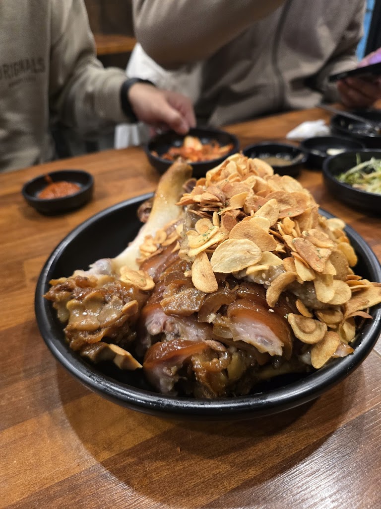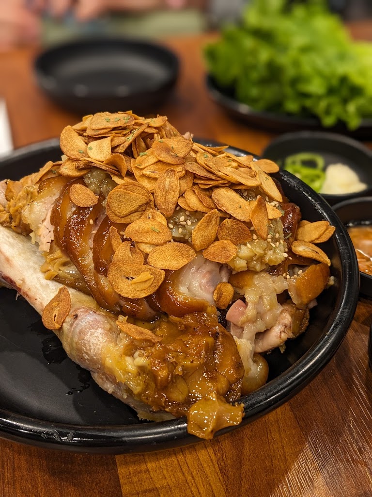Delicious pork trotters and steamed pork. They have a variety of flavours, and all taste really good. Recommend the roasted jokbal, garlic jokbal, and spicy bossam.