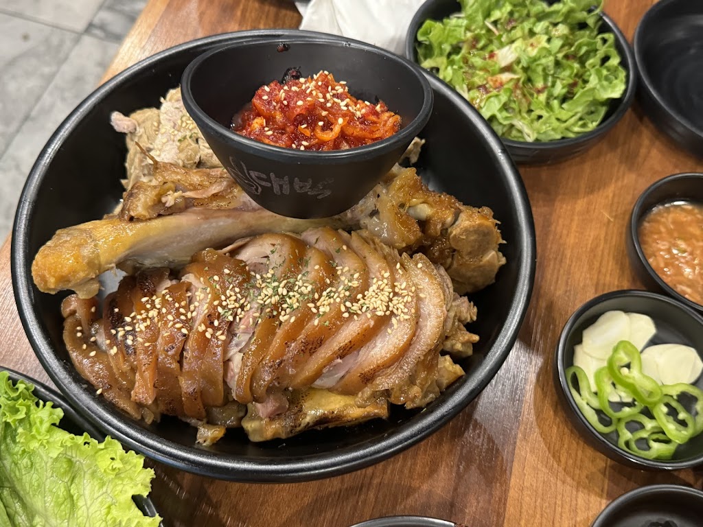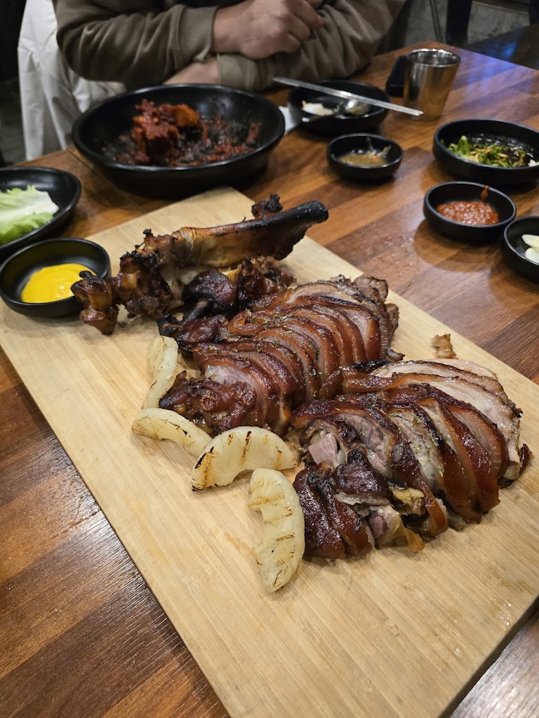 I ordered the bossam and pigs feet half, but the pigs feet seemed to have a very slight odor, the bossam kimchi was a bit sweet, and overall it was decent, but the portion seemed a bit small for the price.