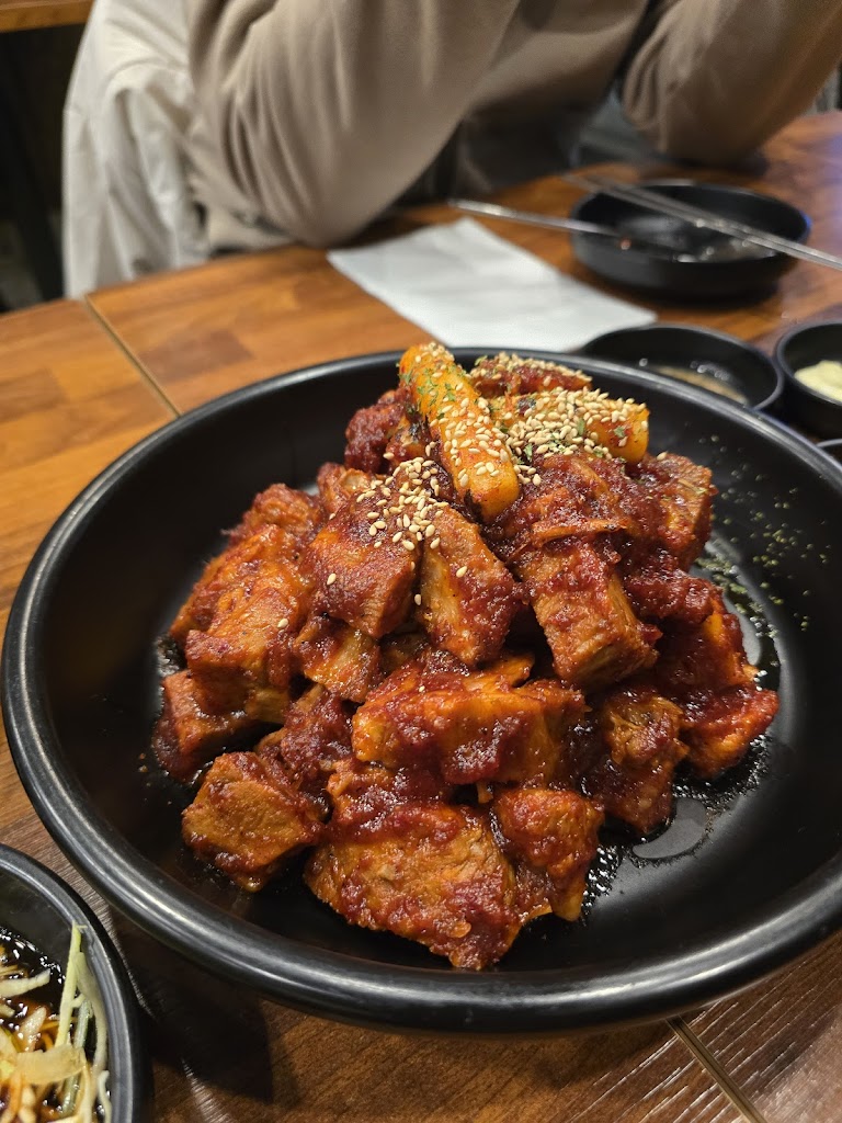 This place has been on our list for awhile, and it was definitely not disappointing. We ordered the jokbal and DIY rice balls. We were worried about the spice level so we settled for regular, but in hindsight, we would ve wanted to order spicy or garlic. It was still good though, and the portions were big. We ended up taking some of it home. On the other hand, we LOVED the DIY rice balls. It seemed simple at first but so delicious, and I personally enjoy food that is interactive aha. We d definitely go again to try another jokbal flavour! Edit to add: We finally tried to spicy jokbal! It was delicious, and I recommend it over the regular flavour. However, we ordered it with tteokbokki, and there wasn t a lot. I don t know if it s worth adding $4 for around 8 pieces. Otherwise, it was delicious. We tried the seafood pancake too which was good.