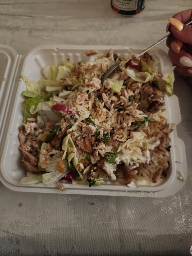 Man on Friday shift evening cleaning the grill made me wait until he finished cleaning. I mentioned earlier and later and when he was putting the sauce to put half of what he usually puts. Still splurges a bunch of sauce. The chicken was on the tupperware and not the grill. Understandable since it is 1 hour before end of shift but atleast heat it up. Even microwave wouldve been acceptable. Last thing, while I was eating, at one point , I tasted the taste of strong soap or cleaning ingredient. I eat shawarma once a week to make me feel healthier and this happens. And this chicken salad bowl with Ayran costed 19$. Dissapointed.