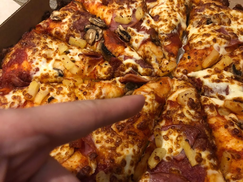 i ordered 2hawaiian pizza, but it turn out its cheese pizza..and it looks like toddler made it the way it cut..so disappointed..not worth it..