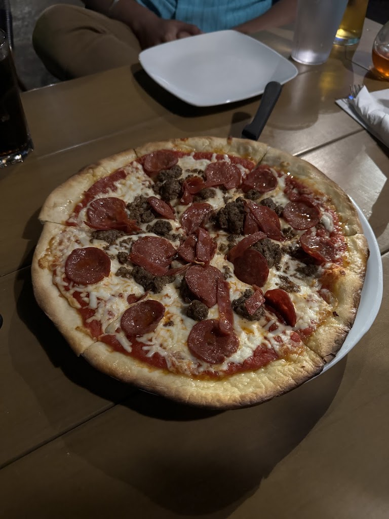 Great Service, the place was packed so we waited 40min to get a tasteless & over cooked/ burned pizza and burger!