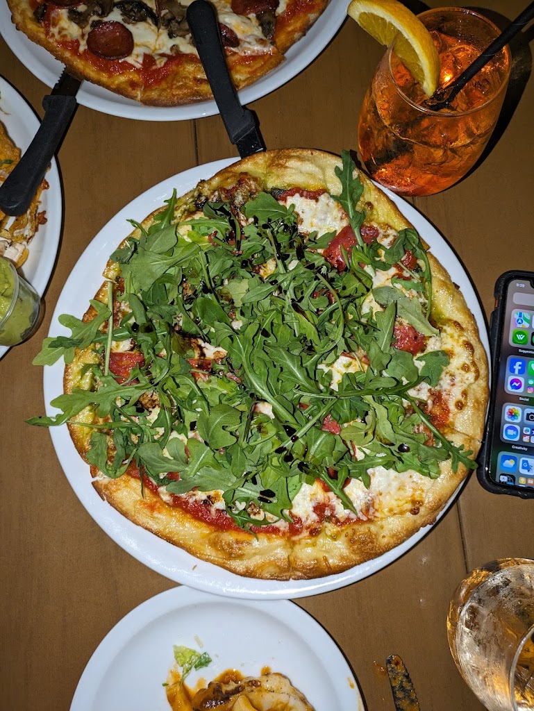 Slow service, small portions, BUT good vibe. Ordered the tribal salad with shrimps. Not that great to be honest. It was too small for $20+ was still hungry. Got the bruschetta pizza, stayed hungry but at least ate a delicious pizza. So yes. Get the pizza, forget the salad. But probably order more than one pizza if you re hungry.