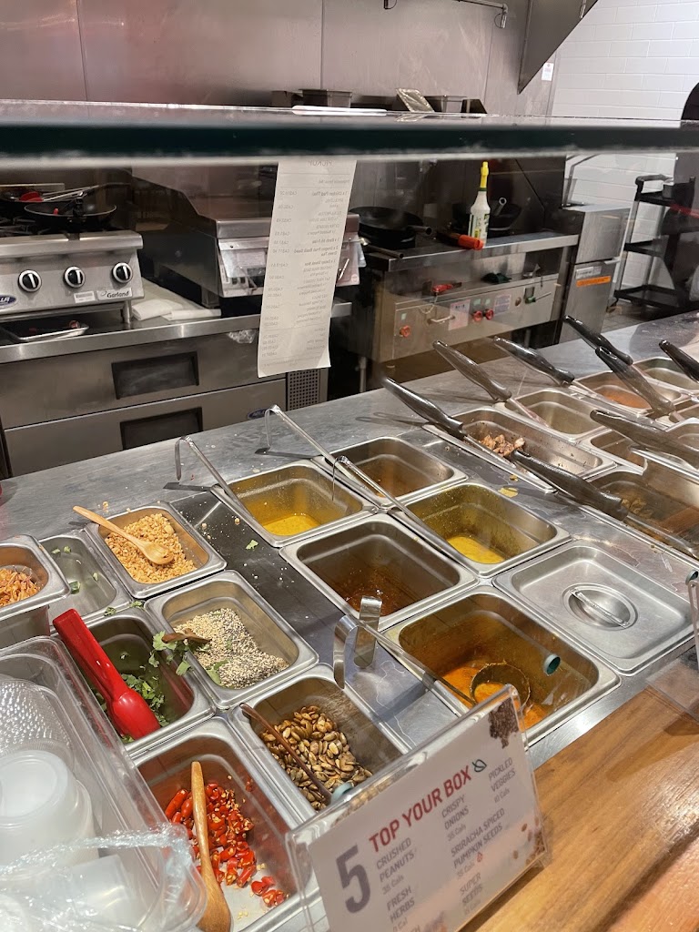 One of my favourite lunch spots! I get the build a box with a chilled noodles base (sometimes spring mix if I want a lighter meal), tofu, edamame and roasted sweet potatoes, all the toppings (except the chillies because they are realllly spicy) topped with sweet chili sauce. The sauce has a medium level spice which adds great flavour. Sometimes I ll switch it up and get the peanut sauce with a half scoop of the spicy curry added. This was a delicious suggestion by the manager a few months ago. I used to order chicken instead of tofu, but now I m vegetarian. I am also on a gluten free diet so I appreciate that everything, including the sauces, are gluten free. If you are using their app, you can order in advance or pay instore, and get points for free drinks, snacks, or even a free box. Their mango ginger ale is so tasty and refreshing. Right now it s on promo for $1 if you buy a box. They ve added some new menu items including a stir fry option, pad Thai, Mac and cheese and soup. I tried the soup once in the winter and it was delicious. The Yonge and finch location has easier parking than Yonge and sheppard, the manager is so hospitable and friendly, the shop is modern and always clean. Highly recommend!!!!