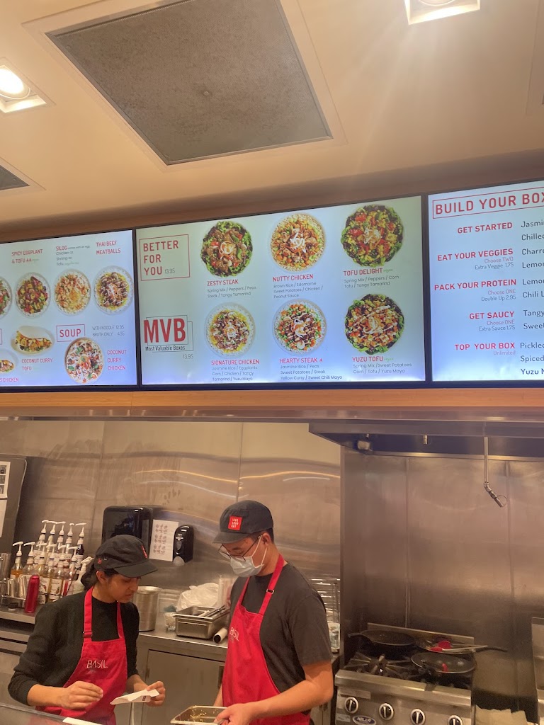 This basil box is located in a very convenient place, restaurant looks very nice and they focus on aesthetics. Very fast and nice staff. I just ordered some bowls for my family 10 minutes ago and am already eating! However, I do think some portions are a bit small and that they could put more meat in their bowl. Other than that, I want to thank my server for the present experience.