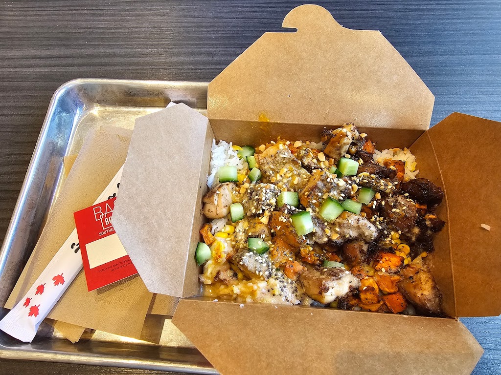 I eat here regularly being in the trades and needing ahealth-concious fast food choice. I really enjoy the food here, I usually build my own box with rice, sweet potatoe, peppers, chicken and peanut/chilli sauce. Its very good and the flavours of that PEANUT SAUCE make me actually crave coming back every time... Staff is always kind and hard working portions are more leaning on the healthier side... But thats what theyre going for and you will be satisfied with the meal. But it really does feel like a healthy wholesome meal packed with flavour for a workday lunch. HIGHLY recommend