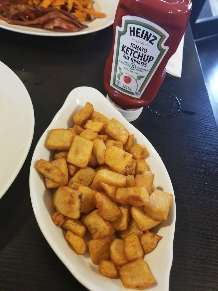 There is a picture that somebody posted with the same meal that I ordered and gave them 4 stars. Thats why you cant trust Google reviews. The potatoes are clearly burnt and the salmon served is flaked canned salmon, the Benedict sauce is no frills canned sauce. Why do people settle for mediocrity? I ordered the same meal and took one bite and left. I like good food. Its unfortunate that so many people in Canada have no idea what good food is. Hence Boston Pizza and Jack Astors everywhere. You wont find big box garbage like that in Europe. I love Canada but unless you live in little Italy Little Portugal etc. The food in this country is terrible. Its that way cause people accept it. I dont. You shouldnt either. Unless youre fine with mediocrity.