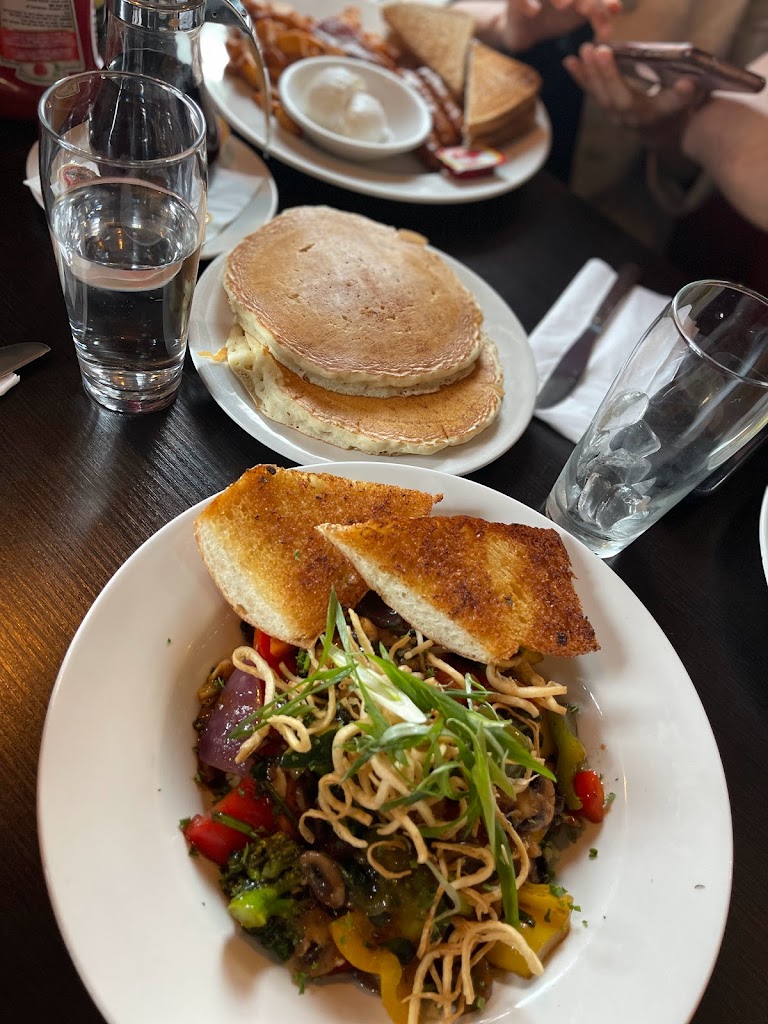 This resurant is amazing. The staff is so friendly and happy everytime we are there. Vegetarian options: Not a lot of vegetarian/vegan options. Mostly all breakfast foods are something with eggs and meat. But the restaurant is still worth a visit, just look over the menu online before going to make sure theres something you will like!