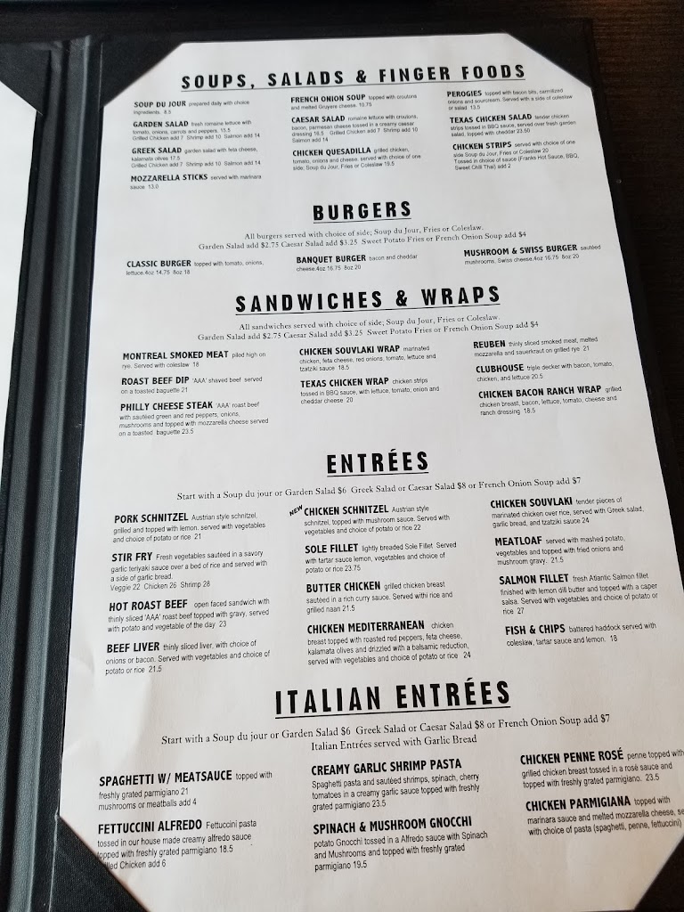 Prices are pretty good in this day and age. Food looka decent aswell. The menu selection is fairly underwhelming given the name of the resteraunt. More classic pub fare than the fancy foreign cuisine the name suggests. So if this is what youre looking for you cant go wrong.